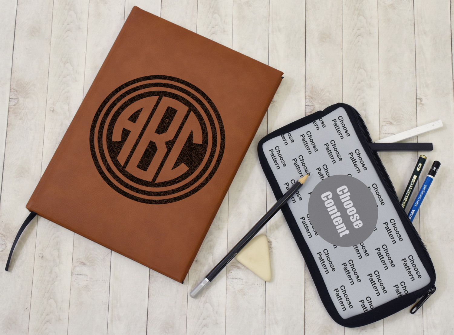 The faux leather covers are a rich cognac / rawhide color and can be customized with your design. From a simple name or monogram or a logo to a detailed mandala - the choice for customization & personalization is truly yours. Customize one of our designs or upload your own.