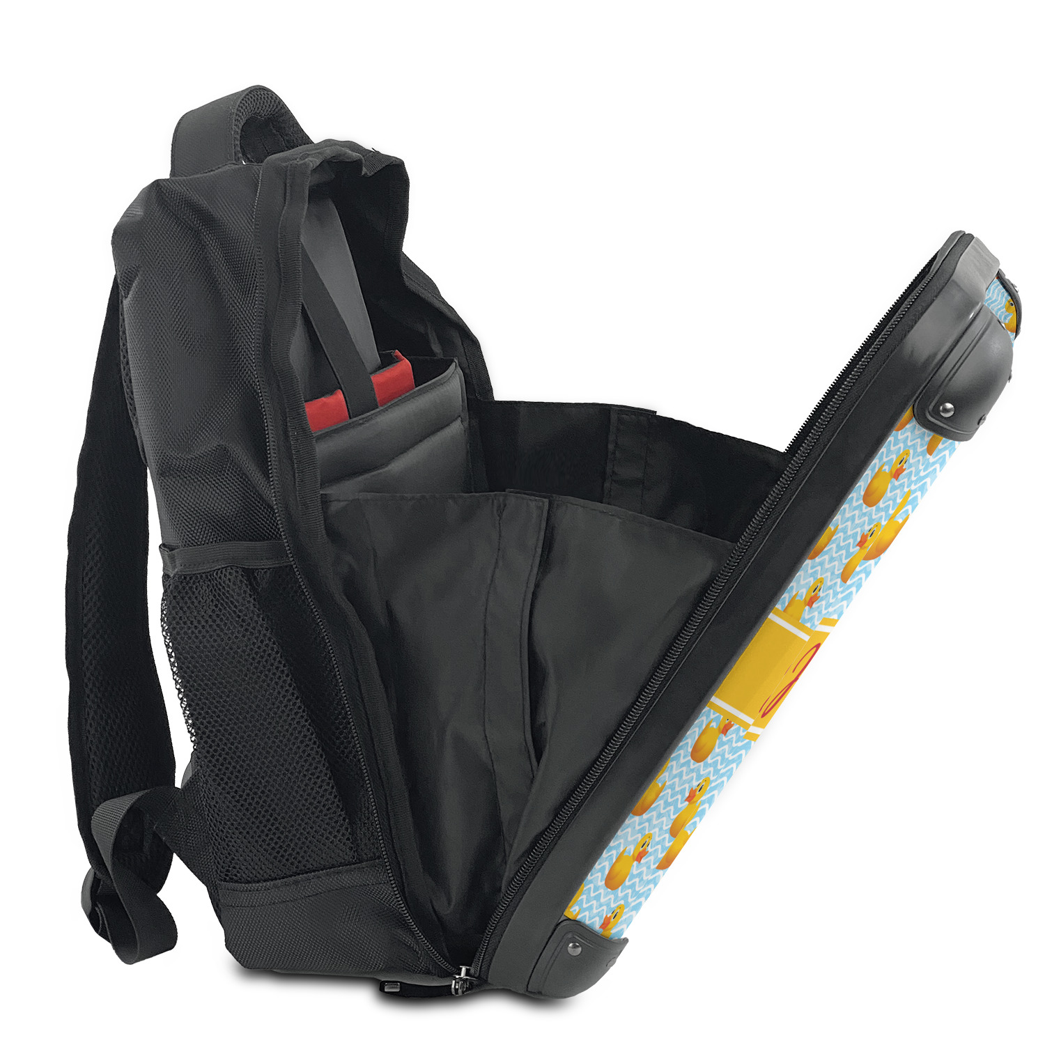 Aside from the sleeves there is a large open space in the backpack to ensure you can fit all of your required belongings. The hard outer shell on the outside helps protect your possessions inside and when customized adds that personal touch to make the backpack distinctly yours and unlike anyone elses.