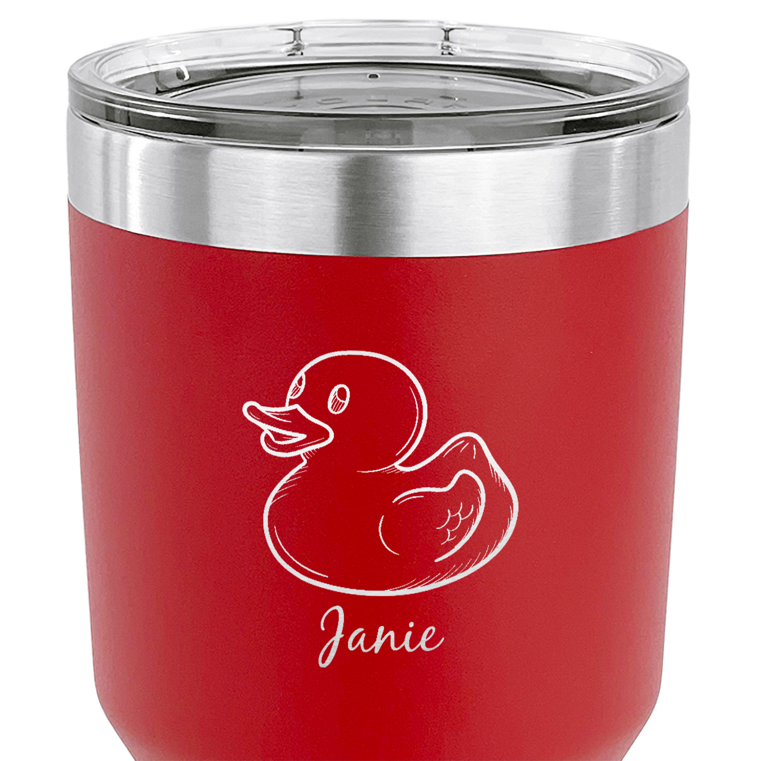 With the 5 colors - Black, Navy, Red, Pink and Coral, you are sure to find a cup to fit your personality. You can chose to engrave on the front or the front and back of the cup. Use our design studio to design your own cup and we laser engrave it for you.