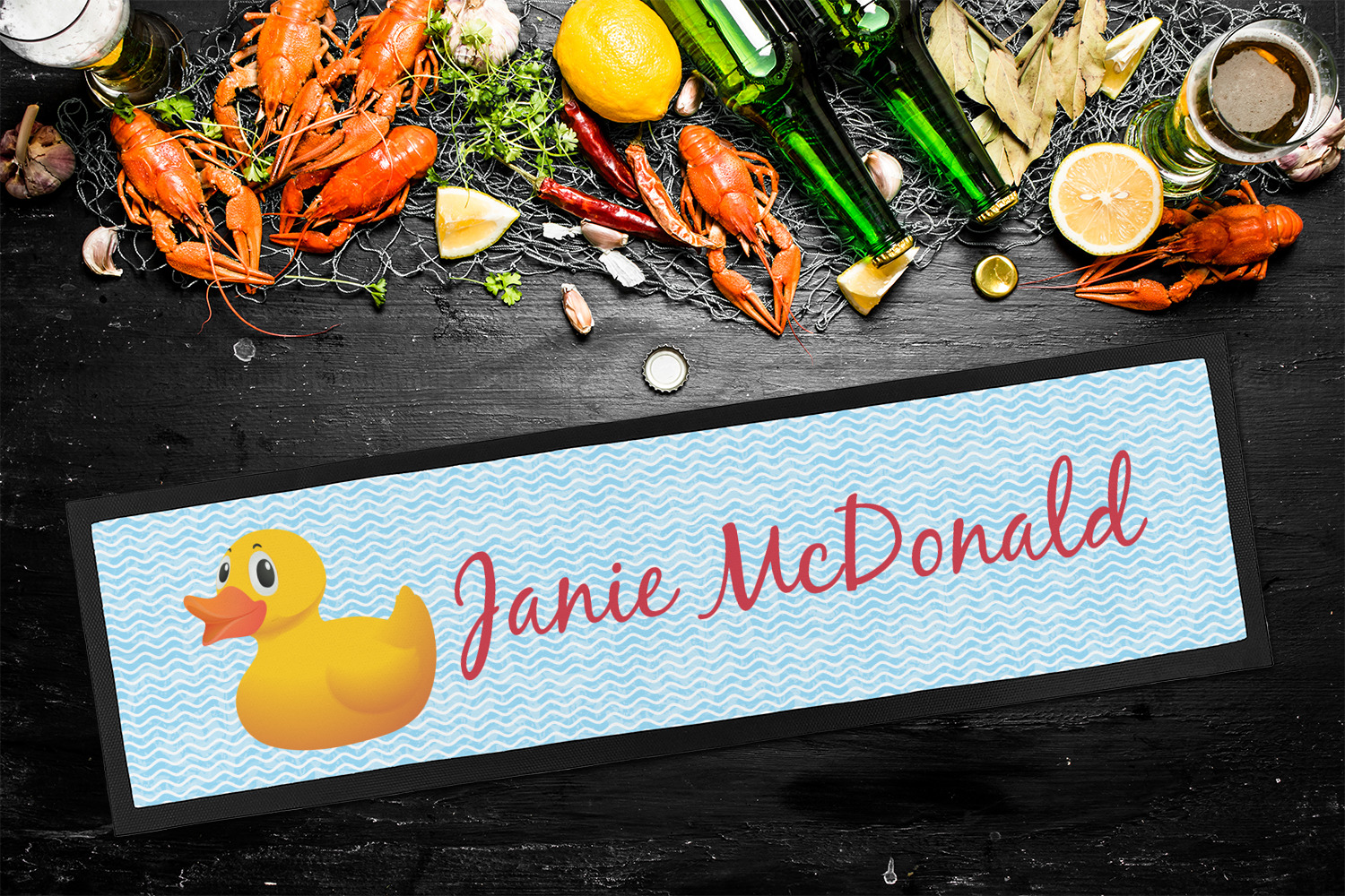 Rubber Duckies are as popular as ever. Our rubber duckie design features traditional yellow rubber duckies on a waves background. The duckies are floating around in water. Cute, adorable and simply precious are words that come to mind when looking at this design.