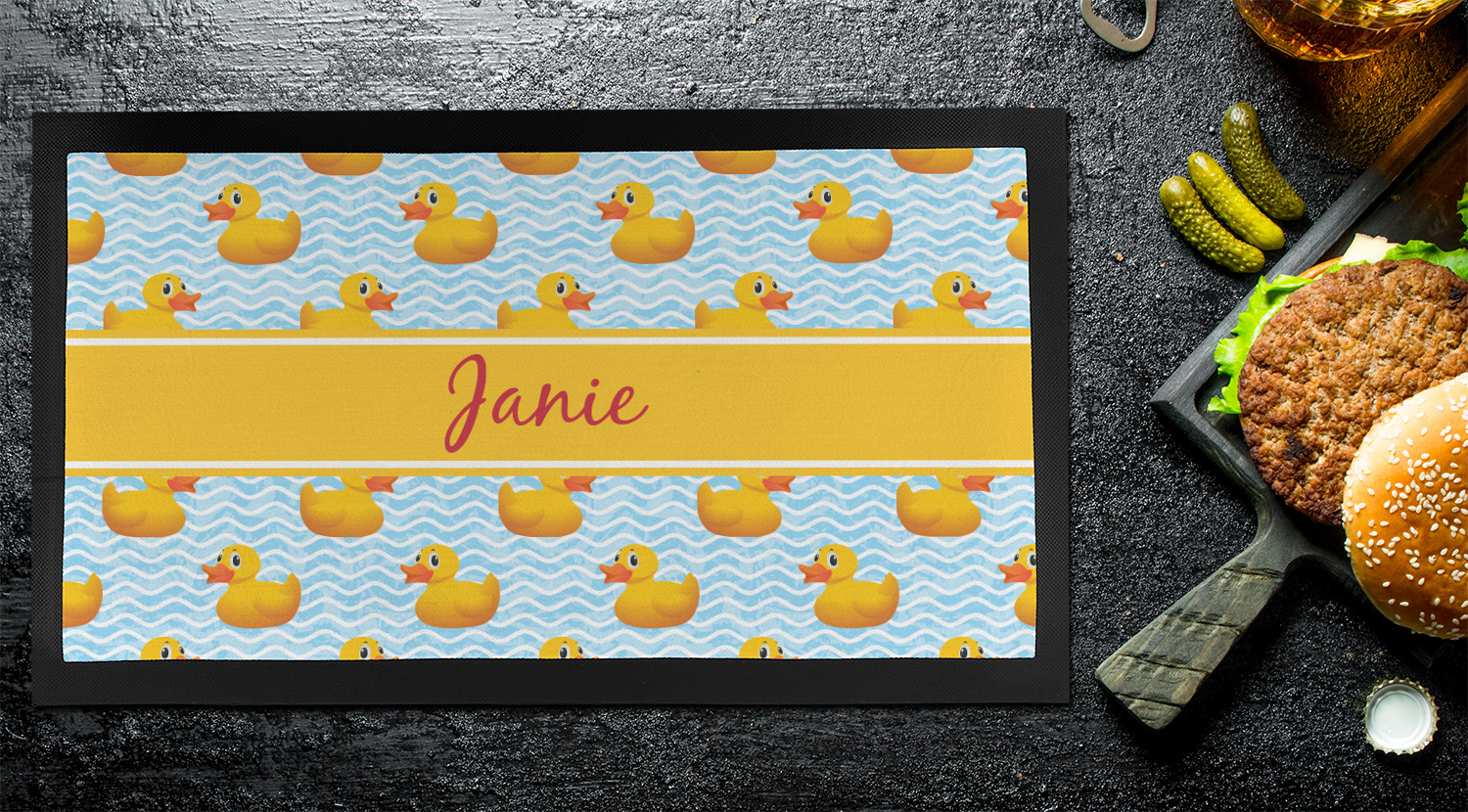 Rubber Duckies are as popular as ever. Our rubber duckie design features traditional yellow rubber duckies on a waves background. The duckies are floating around in water. Cute, adorable and simply precious are words that come to mind when looking at this design.