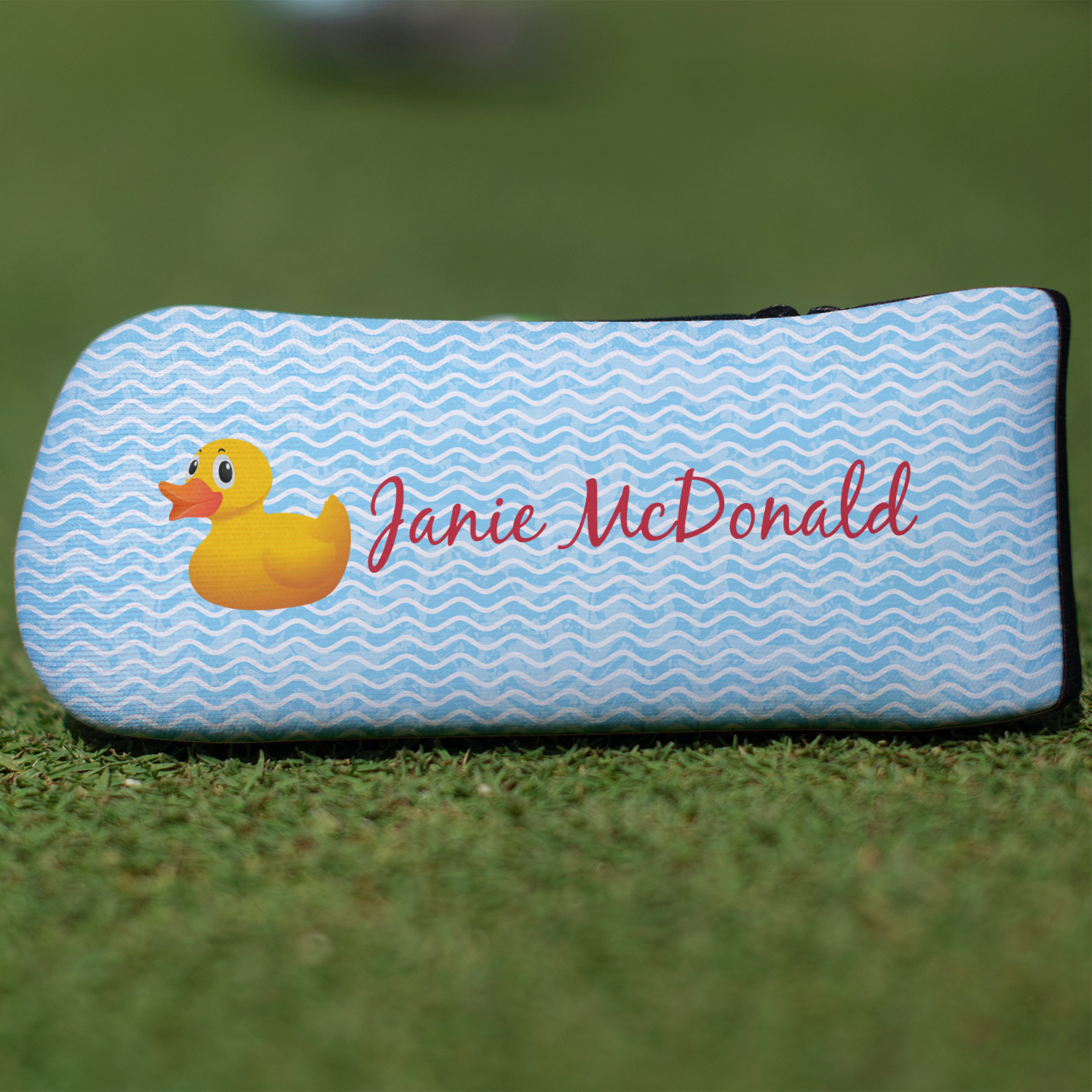 Water resistant, this cover is sure to protect your lucky club. Your design is printed on top, while the back of the putter cover is black.
