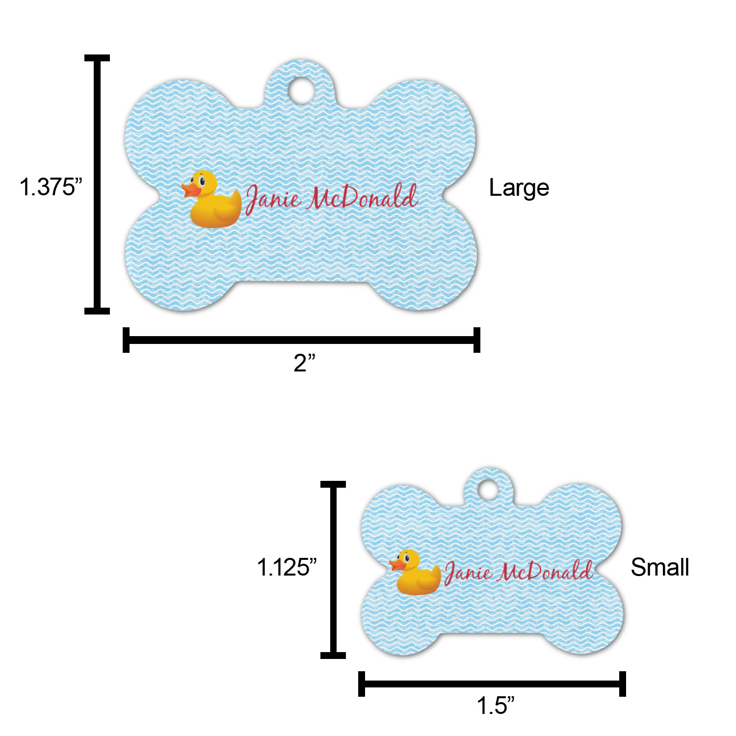 The small bone dog tag size is perfect to pair with our small dog collars, the large size pairs well with our large dog collars.