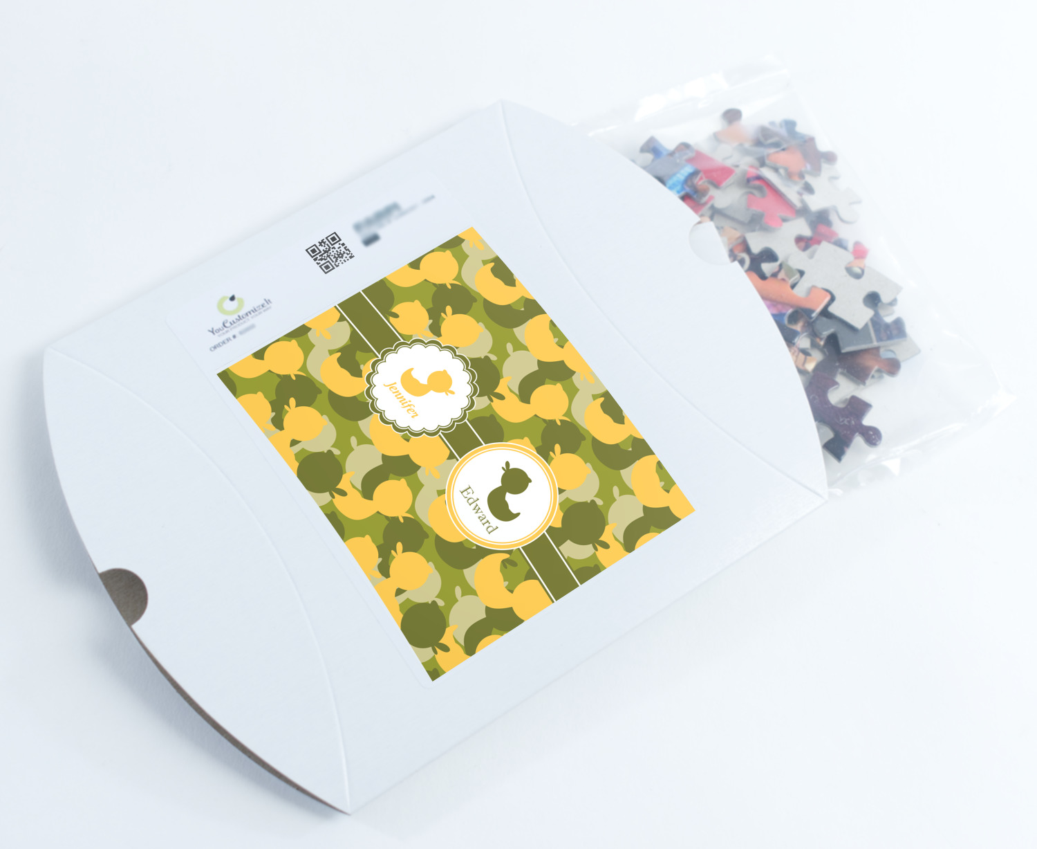 Depending on the look you are trying to achieve, you can add; a thematic pattern or background, with a photo in a frame and text or personalization to your puzzle. Basically if you can imagine it, you can design it!