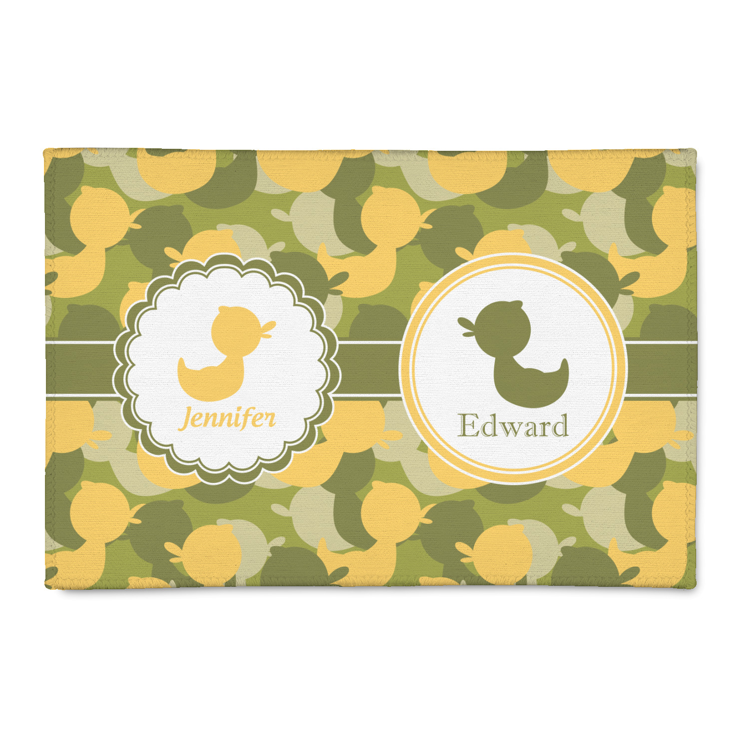 We chose to use a couples / twin personalization on our duck camo design. We used two labels - one is a girl round scalloped, while the second label is a simple round. We used the duck graphics from the camo pattern and used names below the graphics for personalization.