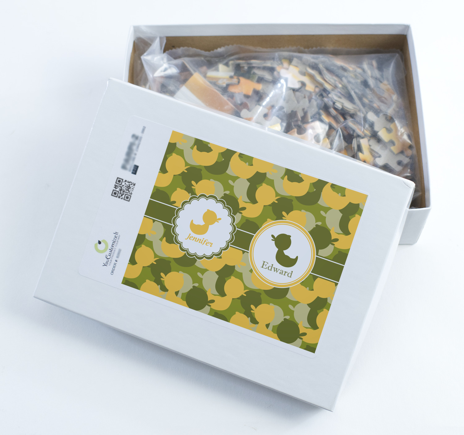 Depending on the look you are trying to achieve, you can add; a thematic pattern or background, with a photo in a frame and text or personalization to your puzzle. Basically if you can imagine it, you can design it!