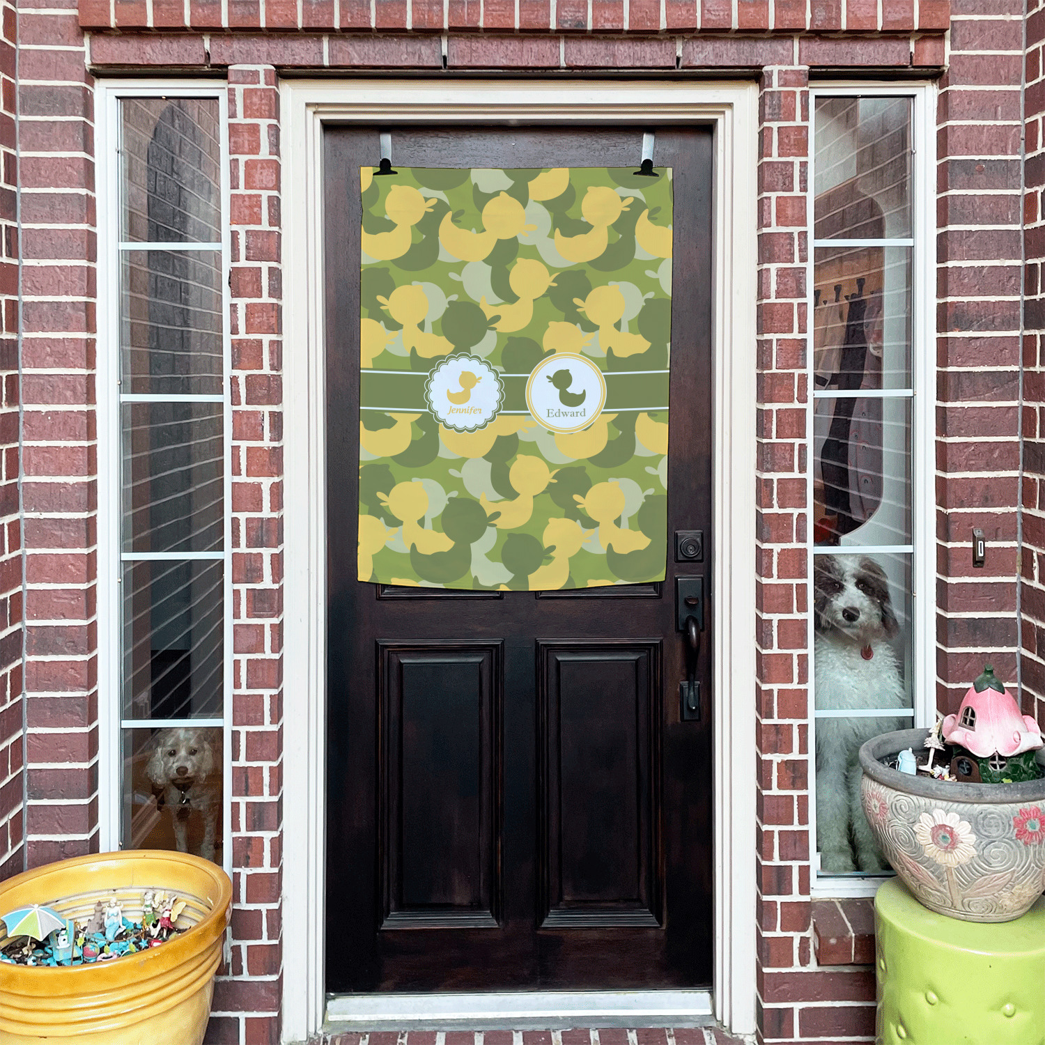 Made from heavy weight polyester fabric, these flags can be printed on one or both sides. They measure 28" wide by 37" long. They can be made to welcome guests, celebrate holidays, show your pride and so much more!