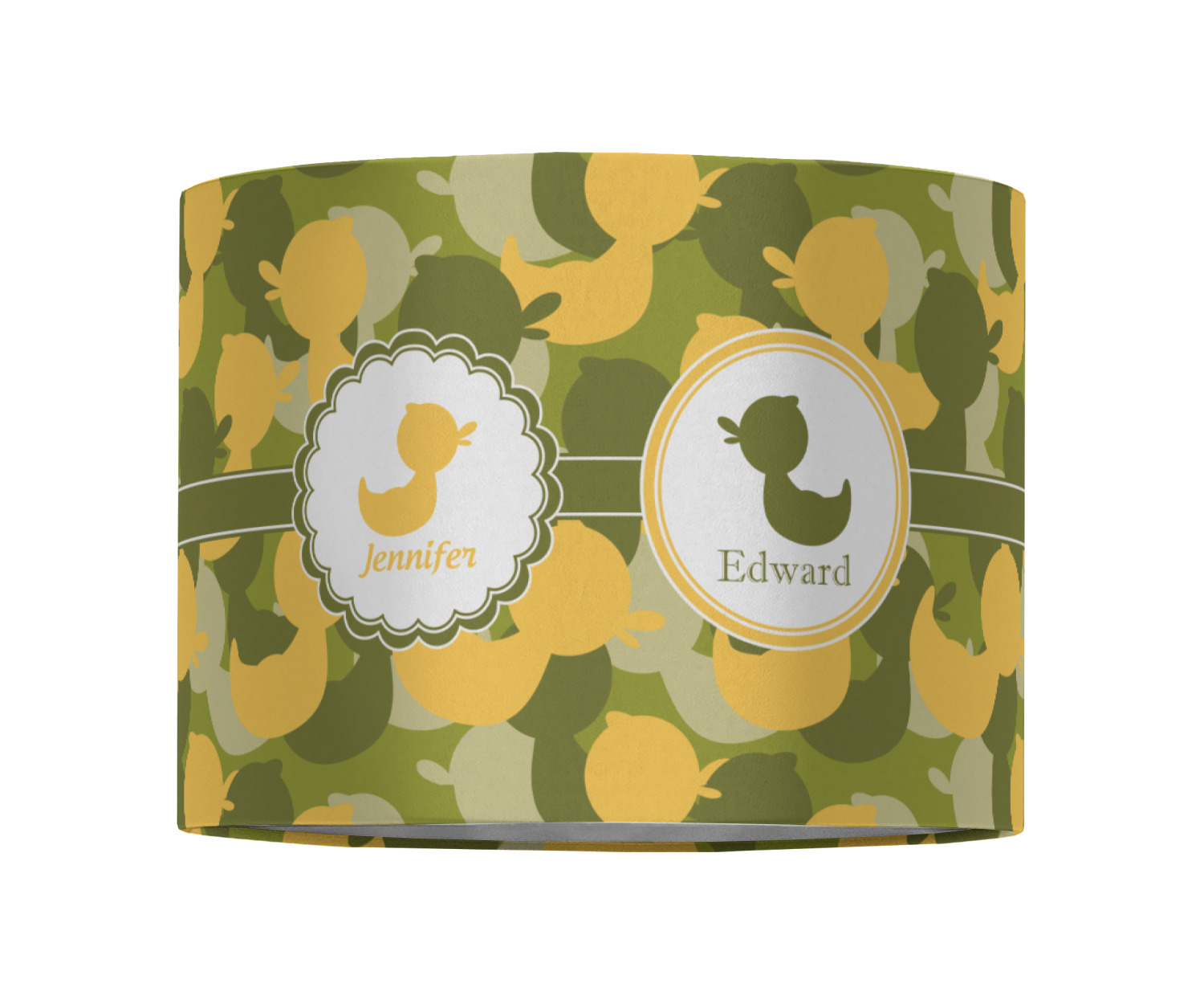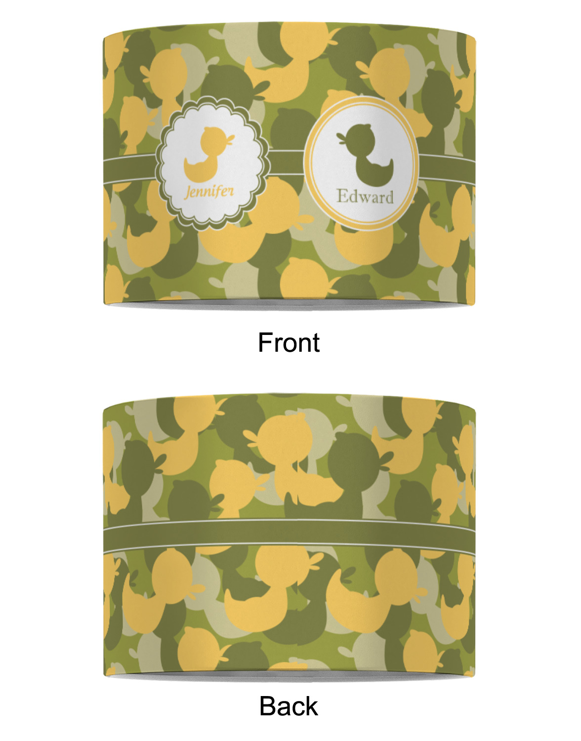 We chose to use a couples / twin personalization on our duck camo design. We used two labels - one is a girl round scalloped, while the second label is a simple round. We used the duck graphics from the camo pattern and used names below the graphics for personalization.
