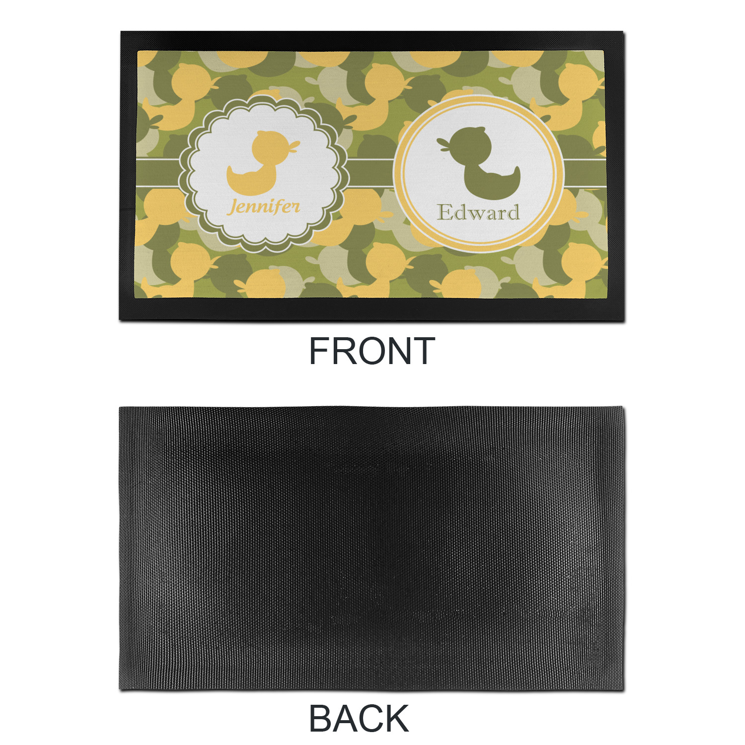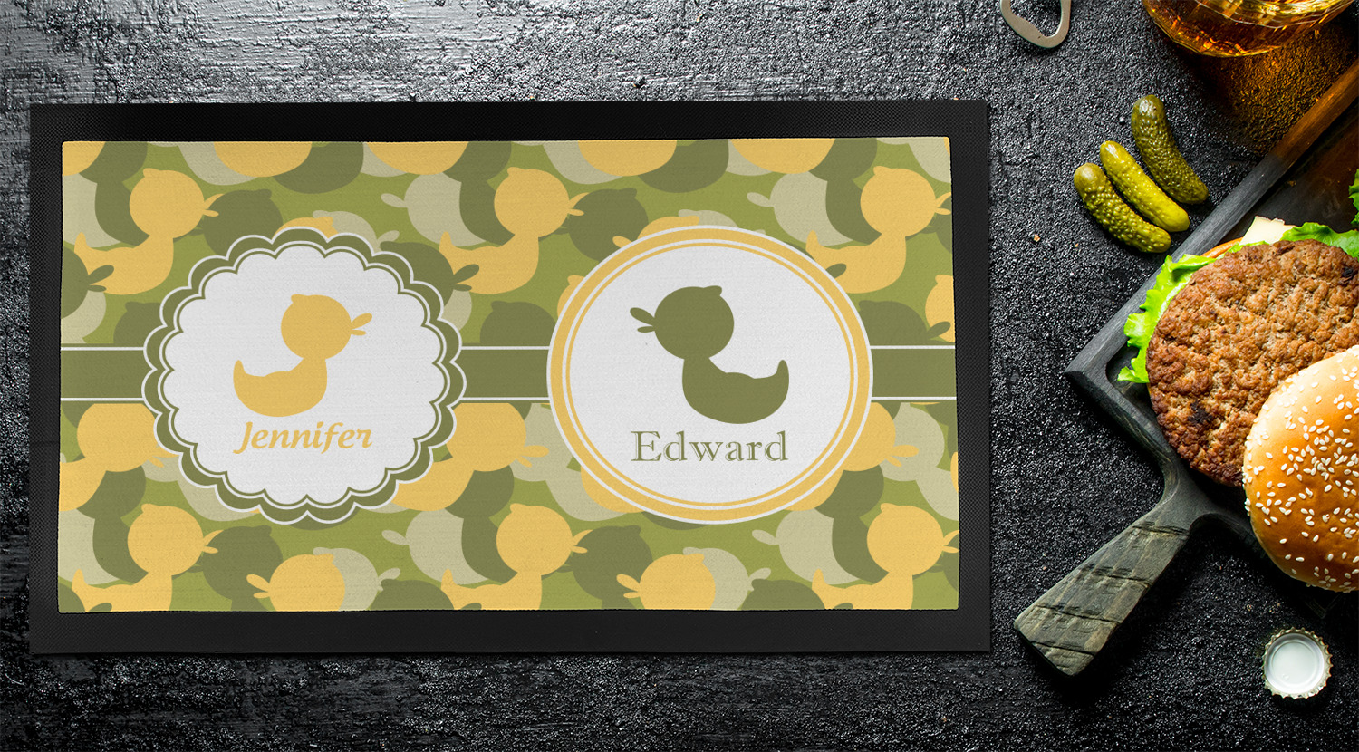 We chose to use a couples / twin personalization on our duck camo design. We used two labels - one is a girl round scalloped, while the second label is a simple round. We used the duck graphics from the camo pattern and used names below the graphics for personalization.