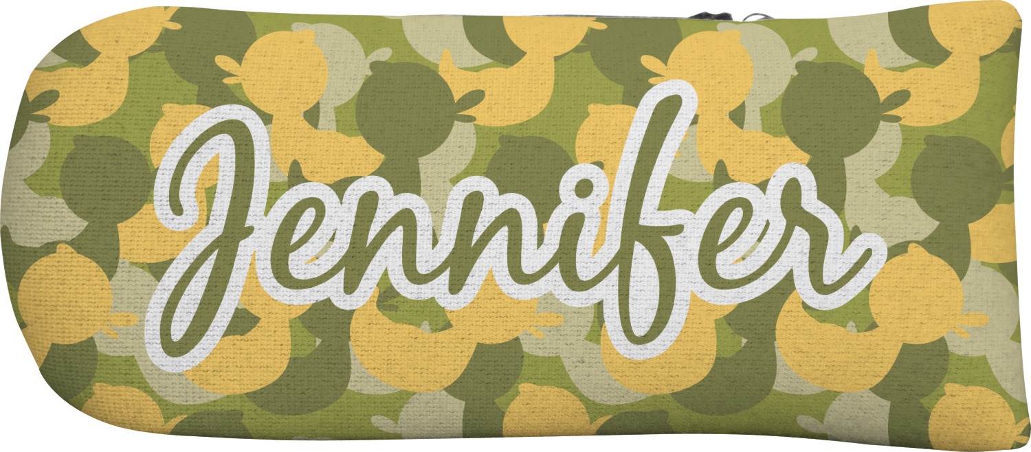 We chose to use a couples / twin personalization on our duck camo design. We used two labels - one is a girl round scalloped, while the second label is a simple round. We used the duck graphics from the camo pattern and used names below the graphics for personalization.