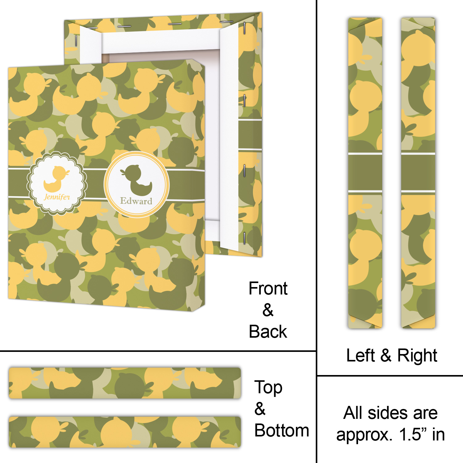 We chose to use a couples / twin personalization on our duck camo design. We used two labels - one is a girl round scalloped, while the second label is a simple round. We used the duck graphics from the camo pattern and used names below the graphics for personalization.