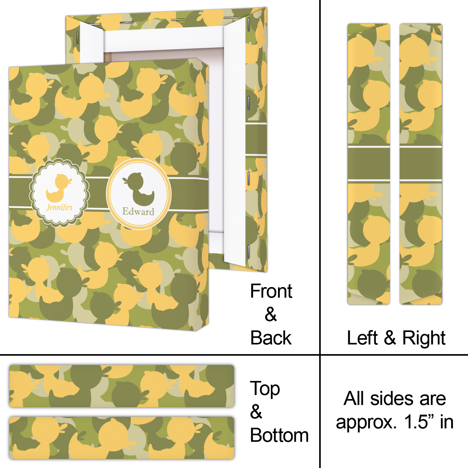 We chose to use a couples / twin personalization on our duck camo design. We used two labels - one is a girl round scalloped, while the second label is a simple round. We used the duck graphics from the camo pattern and used names below the graphics for personalization.