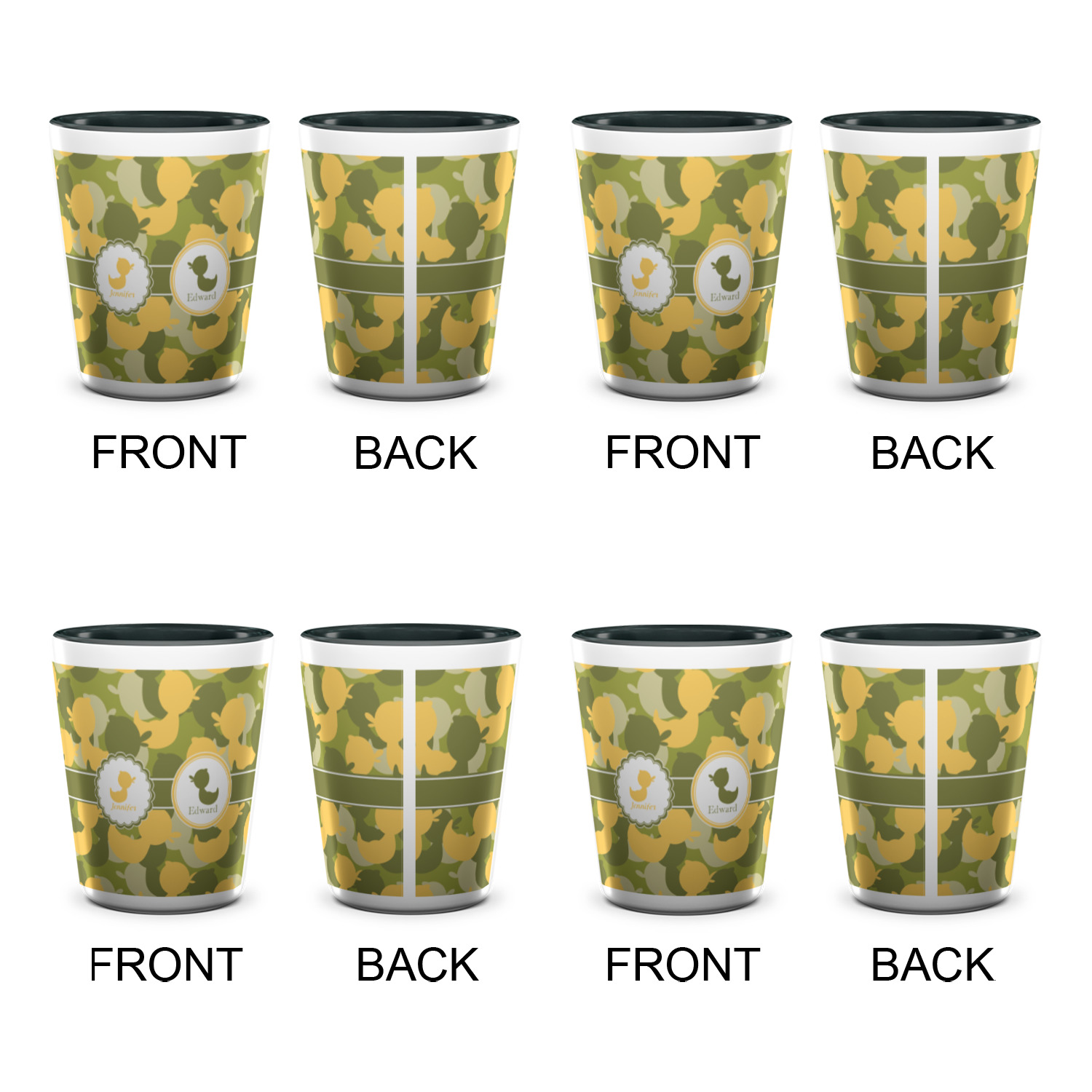 Made from ceramic these shot glasses are printed in full color with the design of your choice. These are a standard 1.5oz size and stand 2.25" tall. Available in a full white ceramic or a two-tone with a black color inside the shot glass. Buy a single or a set of 4, all of which can be designed separately to get you just what you want and need.