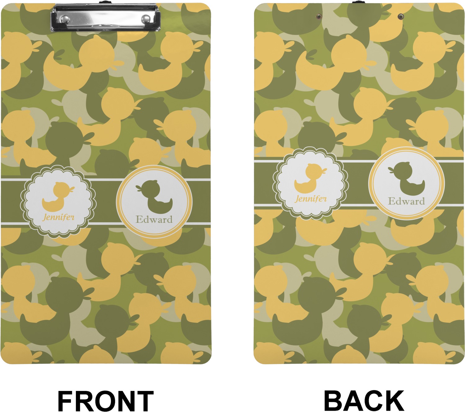 These custom clipboards are made from a strong hardboard and are coated with a glossy finish that accentuates the colors of your design. Alongside a retractable hook at its top, these decorative clipboards also feature sturdy clips to secure several sheets of paper. We sell these clipboards in two separate sizes. Our letter size measures at 12.5" L x 9" W, while our legal clipboard is approximately 15.5" L x 9" W. On both models, your personalization is printed on both sides of this clipboard and can be customized individually.