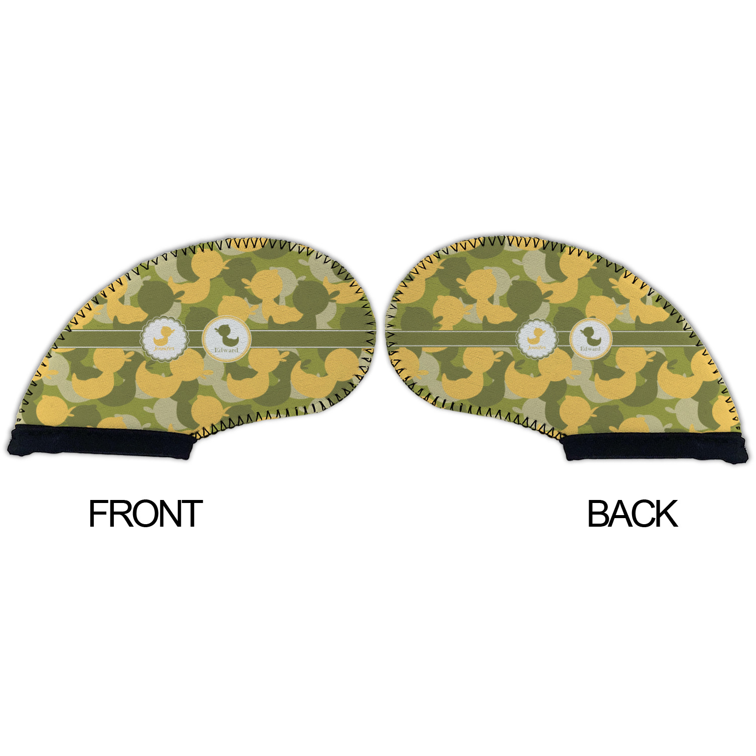 We chose to use a couples / twin personalization on our duck camo design. We used two labels - one is a girl round scalloped, while the second label is a simple round. We used the duck graphics from the camo pattern and used names below the graphics for personalization.