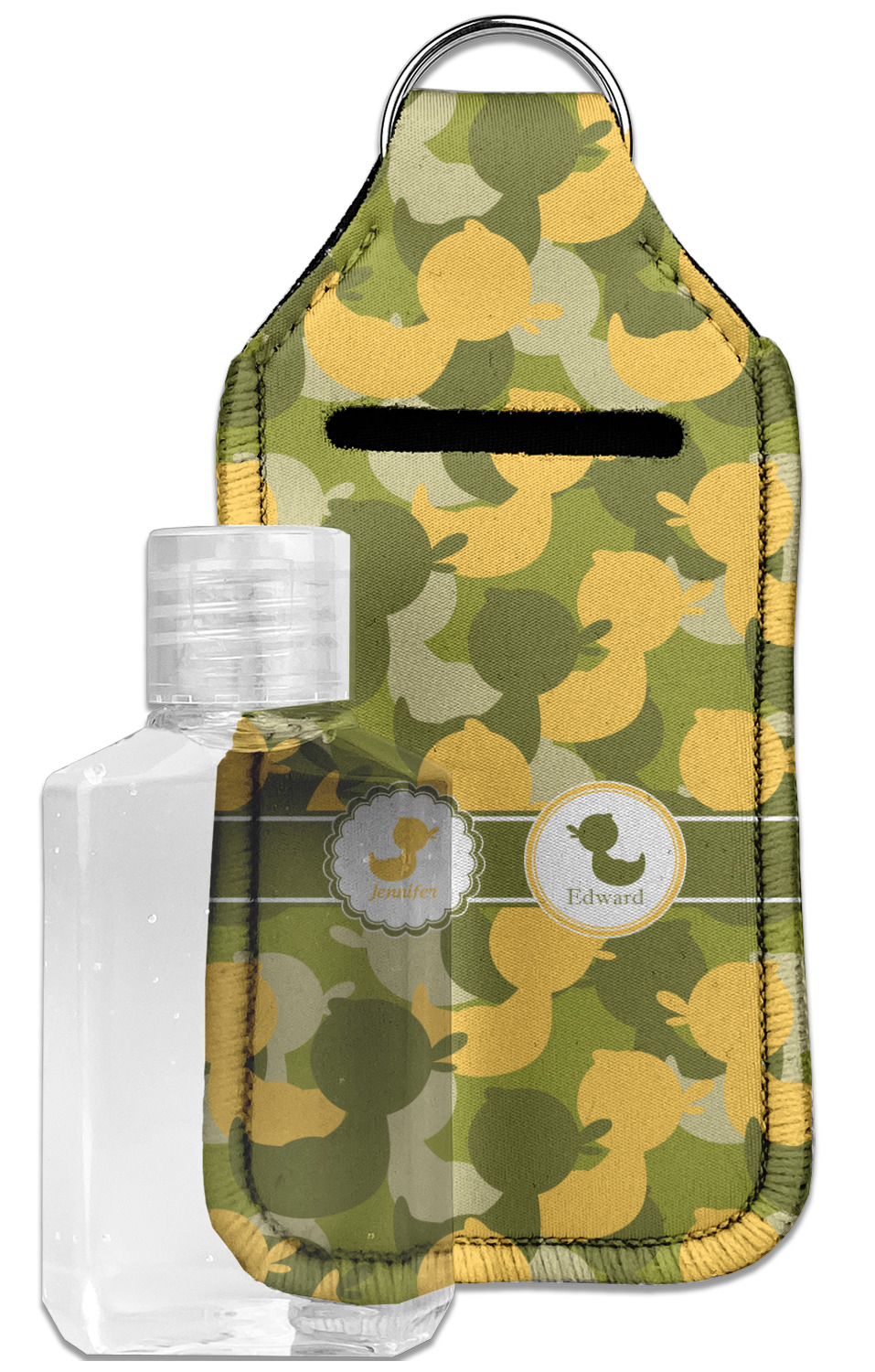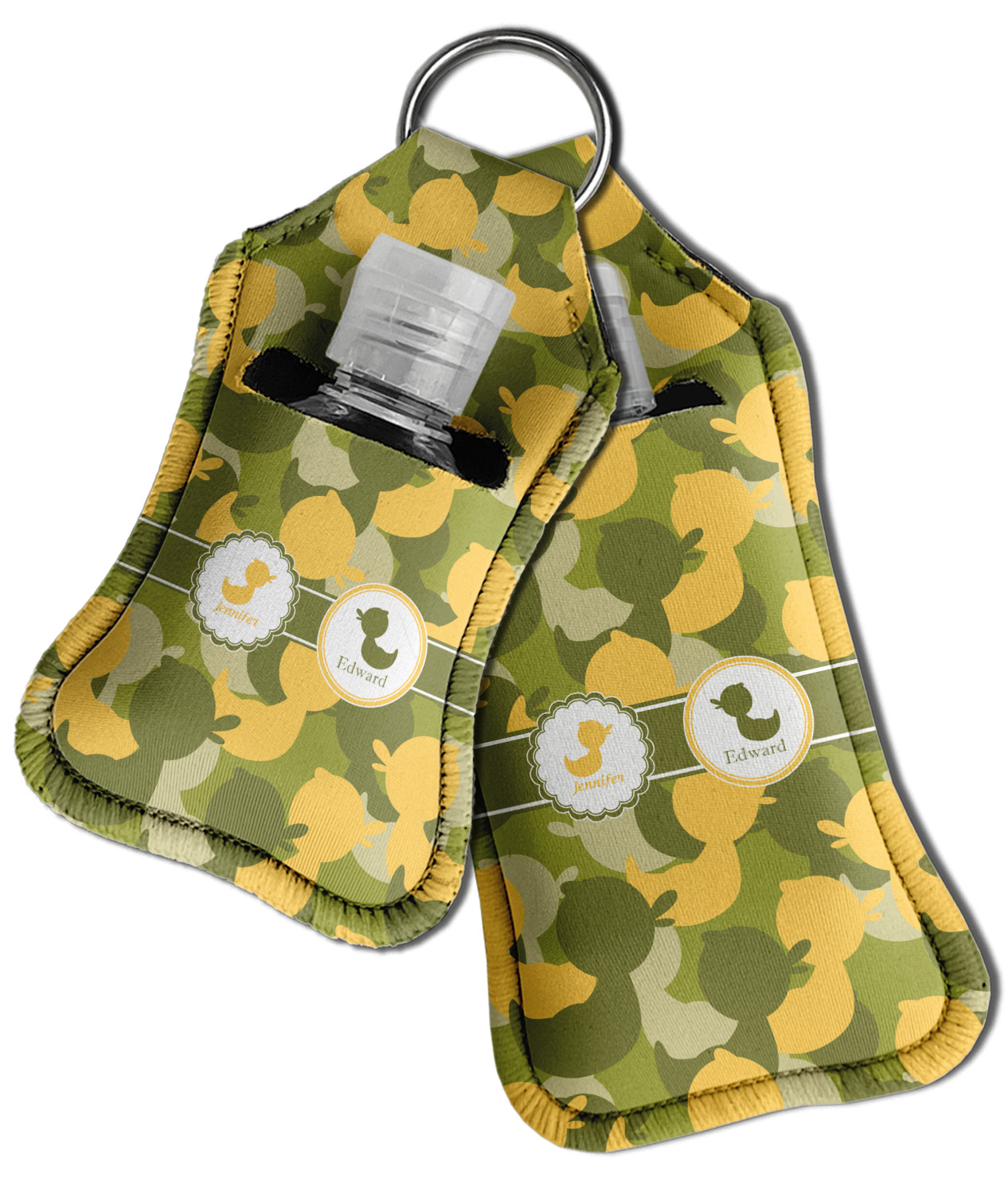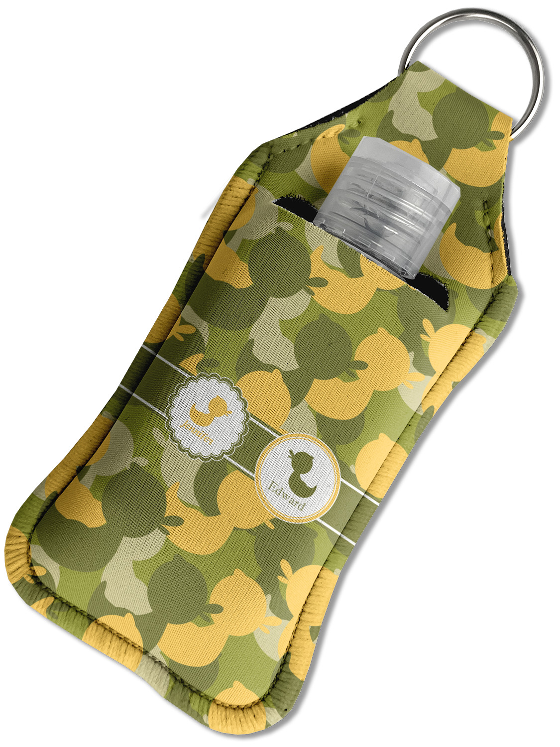 Each hand sanitizer holder comes with its own empty travel-sized, refillable hand sanitizer sure to fit snug in your customized sanitizer case! Our hand sanitizer cases are a durable, yet soft neoprene material sure to last any daily activities or travel agenda. Customize and personalize a hand sanitizer bottle holder with one of our two sizes - small (4.25" x 2.25") or large (5.5" x 2.5"). Each travel sanitizer holder comes with a keyring for attachment on bags, keys, or more!