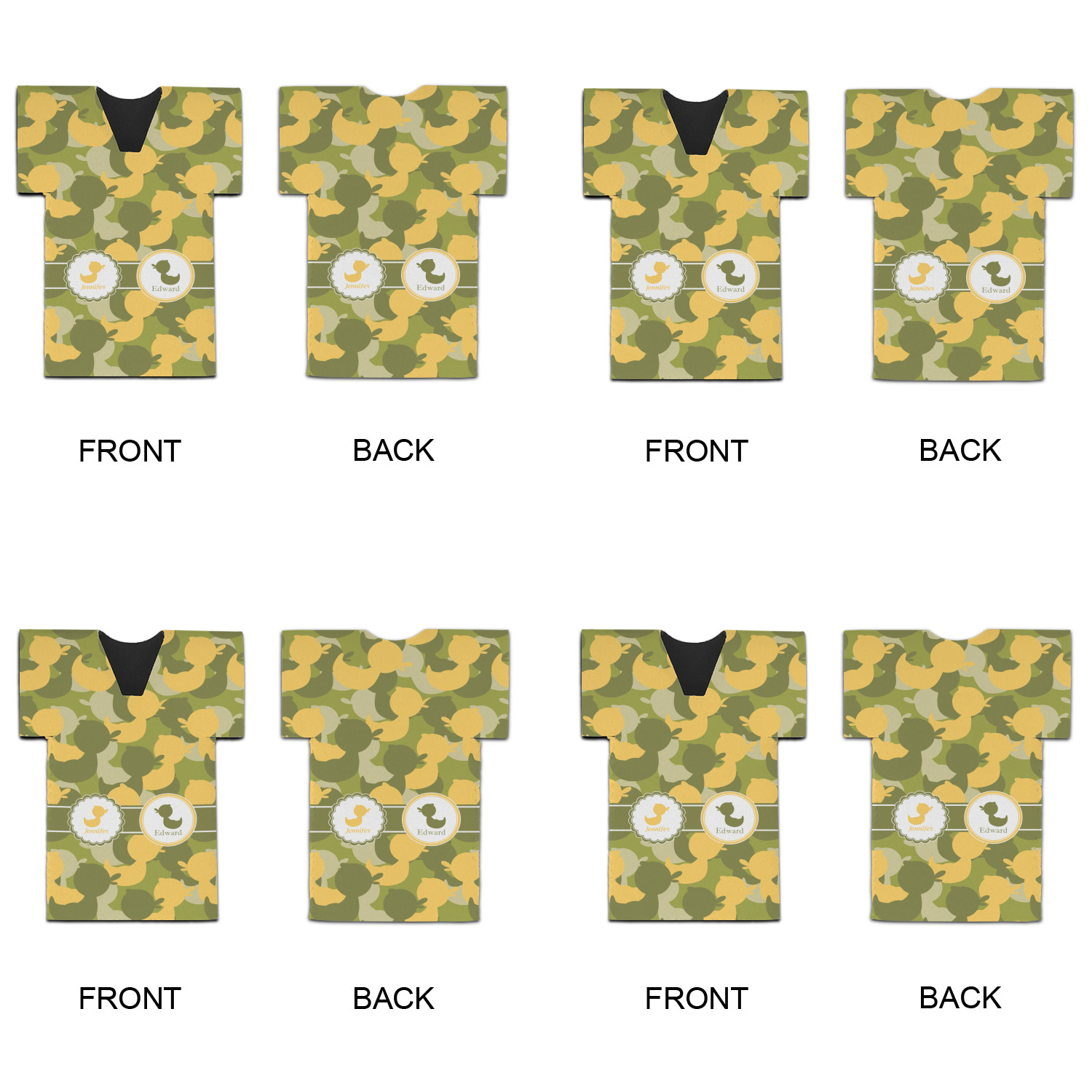 We chose to use a couples / twin personalization on our duck camo design. We used two labels - one is a girl round scalloped, while the second label is a simple round. We used the duck graphics from the camo pattern and used names below the graphics for personalization.