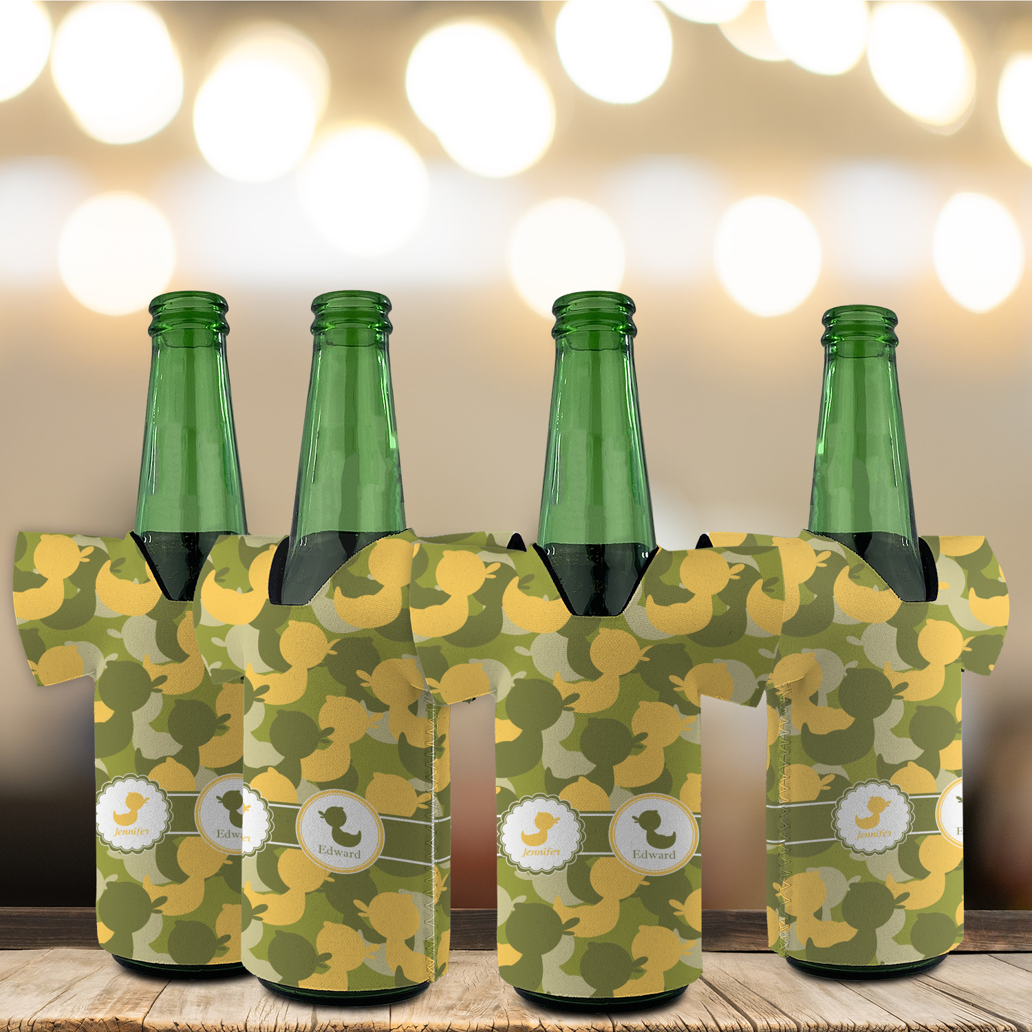 Fabricated from a thick, insulating neoprene, these custom can sleeve keep your drink cold, while proudly displaying your customization on all sides. These can sleeves are designed to fit most 12oz bottles. Available in two types - zipper cooler for insulating the full bottle or the jersey style for sports season. Also available as a single can sleeve or in a set of 4 for you to share with friends and family. For convenient storage, they can also be folded.