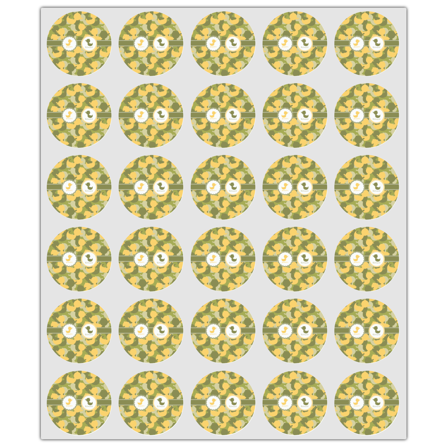 We chose to use a couples / twin personalization on our duck camo design. We used two labels - one is a girl round scalloped, while the second label is a simple round. We used the duck graphics from the camo pattern and used names below the graphics for personalization.
