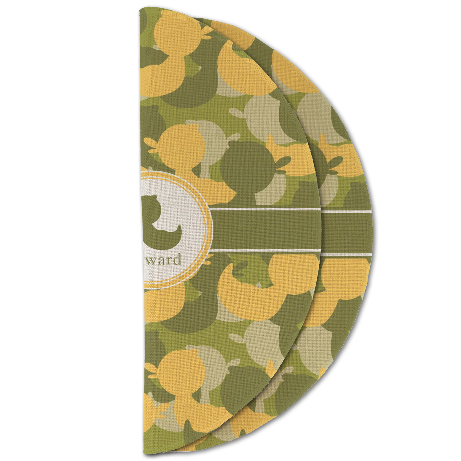 We chose to use a couples / twin personalization on our duck camo design. We used two labels - one is a girl round scalloped, while the second label is a simple round. We used the duck graphics from the camo pattern and used names below the graphics for personalization.