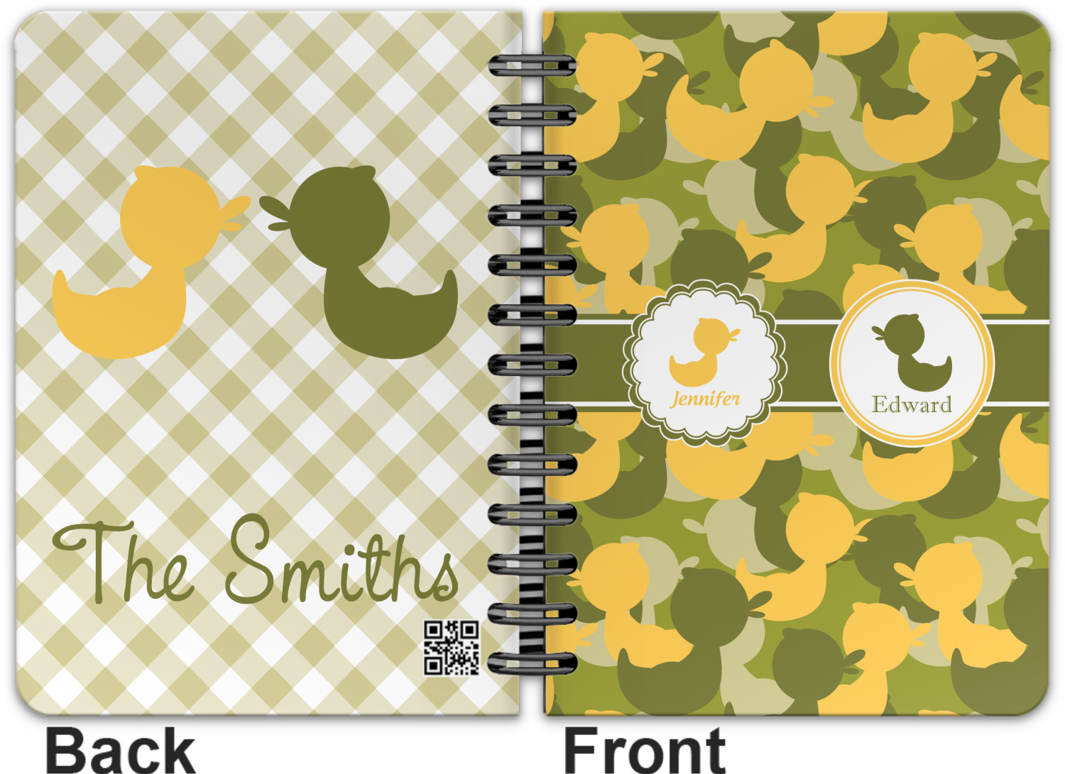 This spiral notebook includes 75 sheets of thick, ruled paper. The front and back of this custom notebook is made of a robust, laminate, plastic covering. We print your personalization on these two panels, underneath a glossy finish, which emphasizes the colors of your design. The two panels and the sheets of paper are held together by a sturdy, black coil. The paper within your bound notebook is perforated for easy, clean tearing.