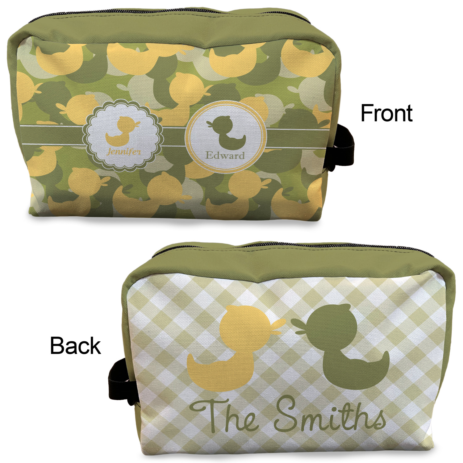 Designing a toiletry bag for yourself or as a gift can be a lot of fun. Our goal is for you to design a bag that reflects your personality and personal style. Our dopp kits are set up so you can design the front, the back and select a coordinating color for the zippered area.