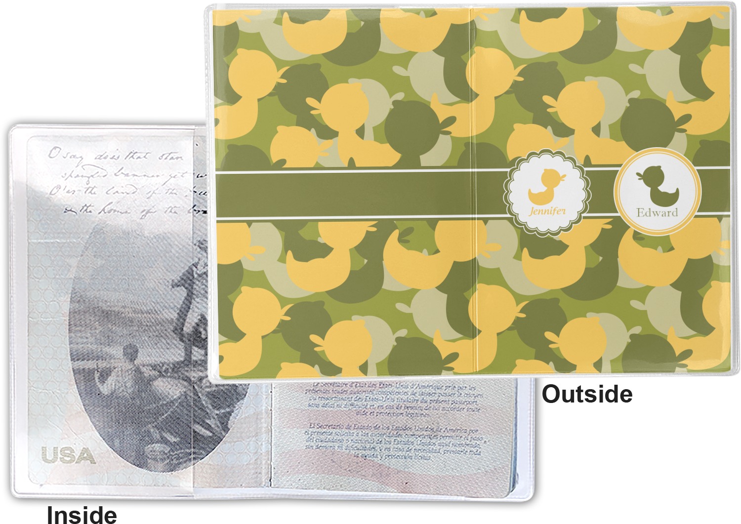 This cover is made of a sturdy clear vinyl with a personalized vinyl insert inside. There is a large and a small pocket on either side to hold the covers of your passport easily and firmly. The passport holder is approximately 7.5" x 5.25", the perfect size to snugly fit your passport. This slim cover is the perfect way to protect your passport without being one more bulky item you have to carry.