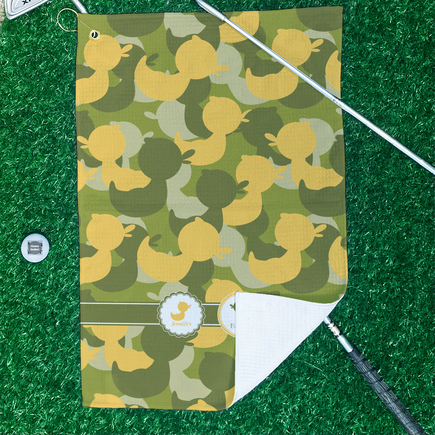 Trying to choose which golf towel is right for you? Our standard golf bag towel (one size - 13" x 18") is a terry loop style towel with a partial print that is great for normal, everyday use. If you are looking for a poly-cotton blend full print towel look at our standard full print golf towel - available in 2 sizes - small (11" x 18") and large (15" x 25"). If you prefer the look and feel of a soft microfiber towel our microfiber golf towels are a great option and allow you to polish your club and ball surfaces to a nice sheen. The microfiber golf towels are also available in 2 sizes - small (11" x 18") and large (15" x 25"). Lastly the waffle weave towel (available in a single size - 16" x 24") is a fantastic option to give you some texture on your towel to allow for more scrubbing and cleaning when playing in rougher, wetter environments. All of these options are able to be washed with bleach to get them clean and will retain their bright colors.