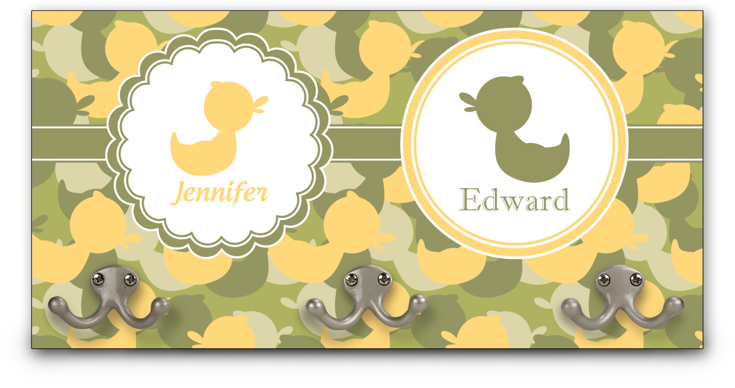 We chose to use a couples / twin personalization on our duck camo design. We used two labels - one is a girl round scalloped, while the second label is a simple round. We used the duck graphics from the camo pattern and used names below the graphics for personalization.