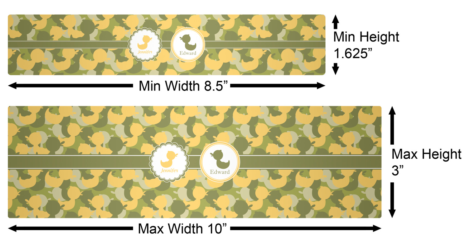 We chose to use a couples / twin personalization on our duck camo design. We used two labels - one is a girl round scalloped, while the second label is a simple round. We used the duck graphics from the camo pattern and used names below the graphics for personalization.