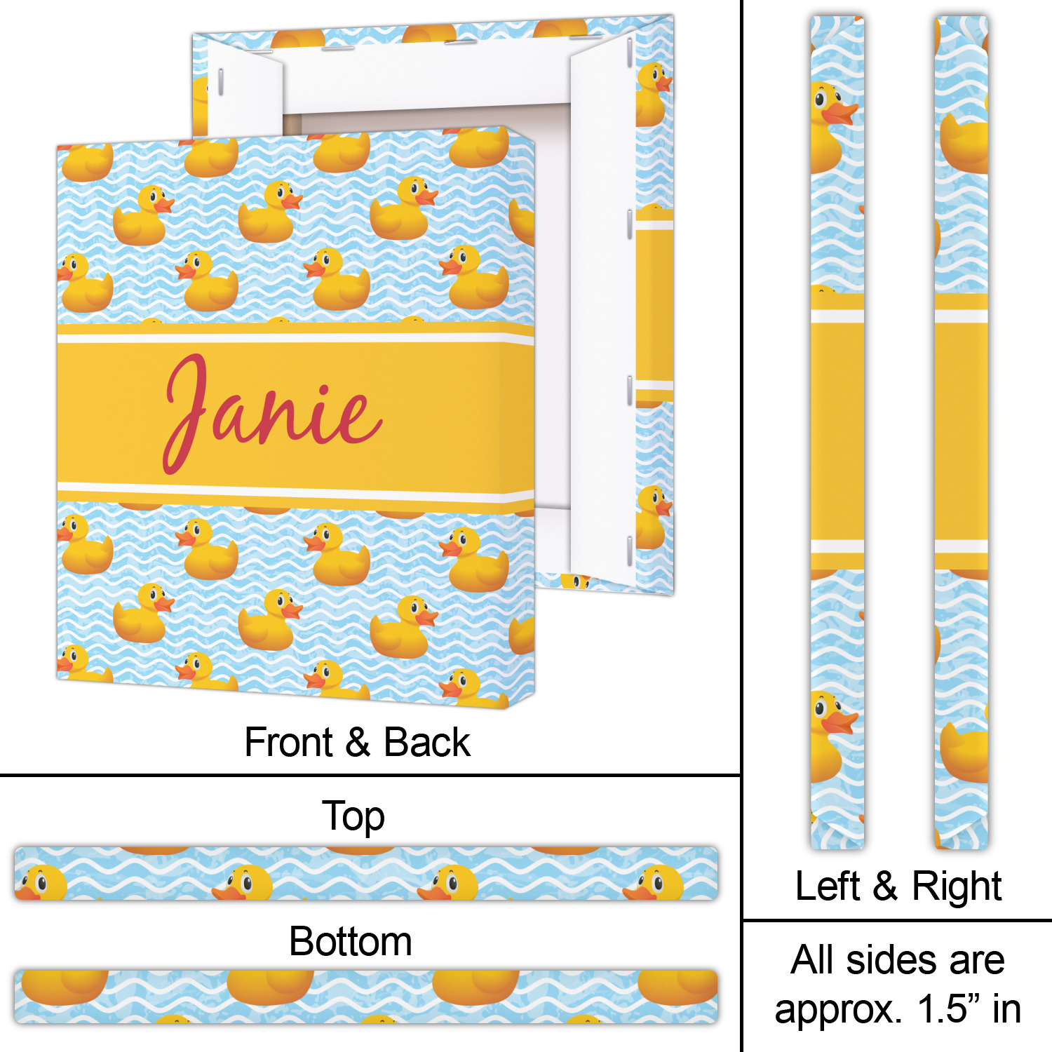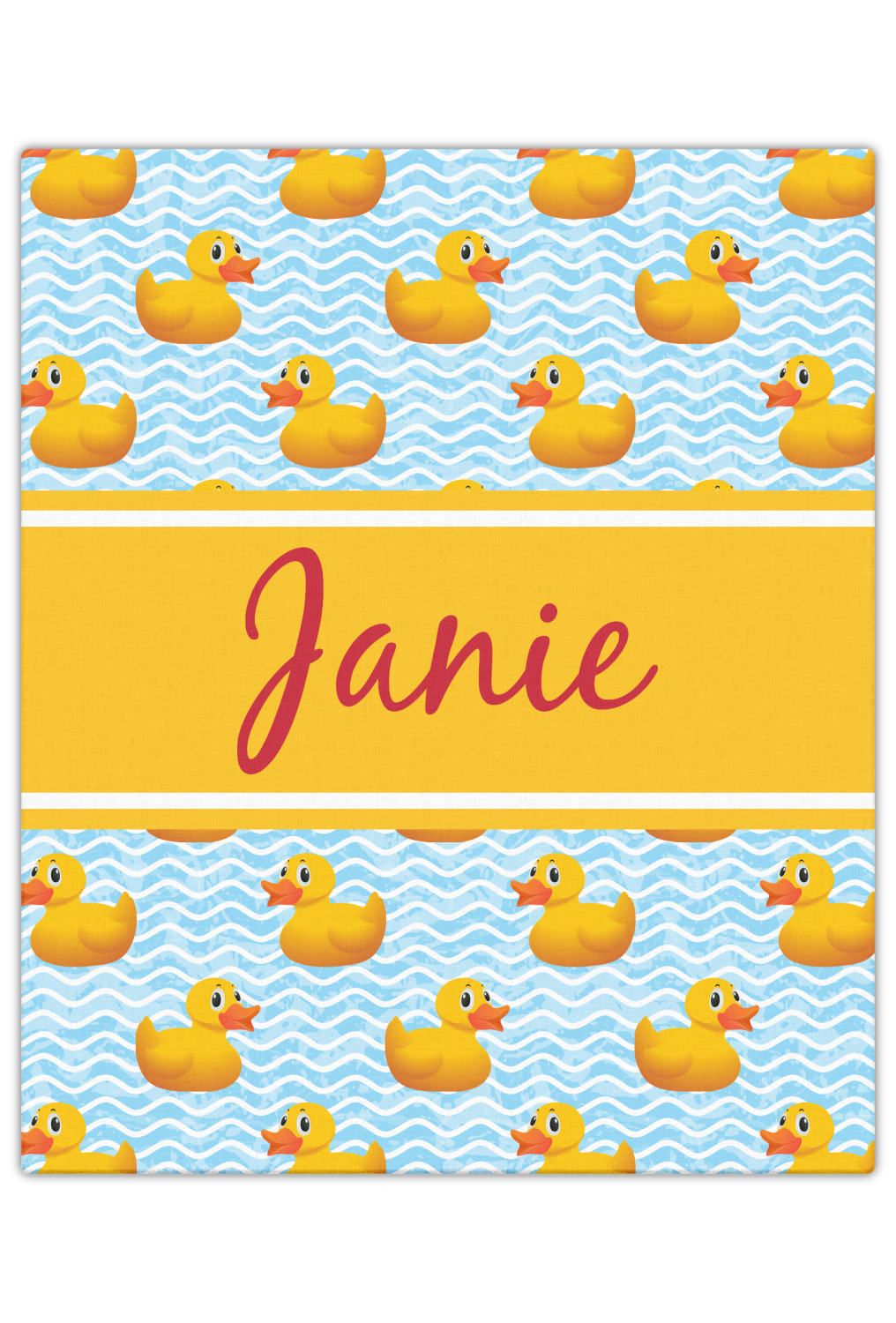 Rubber Duckies are as popular as ever. Our rubber duckie design features traditional yellow rubber duckies on a waves background. The duckies are floating around in water. Cute, adorable and simply precious are words that come to mind when looking at this design.