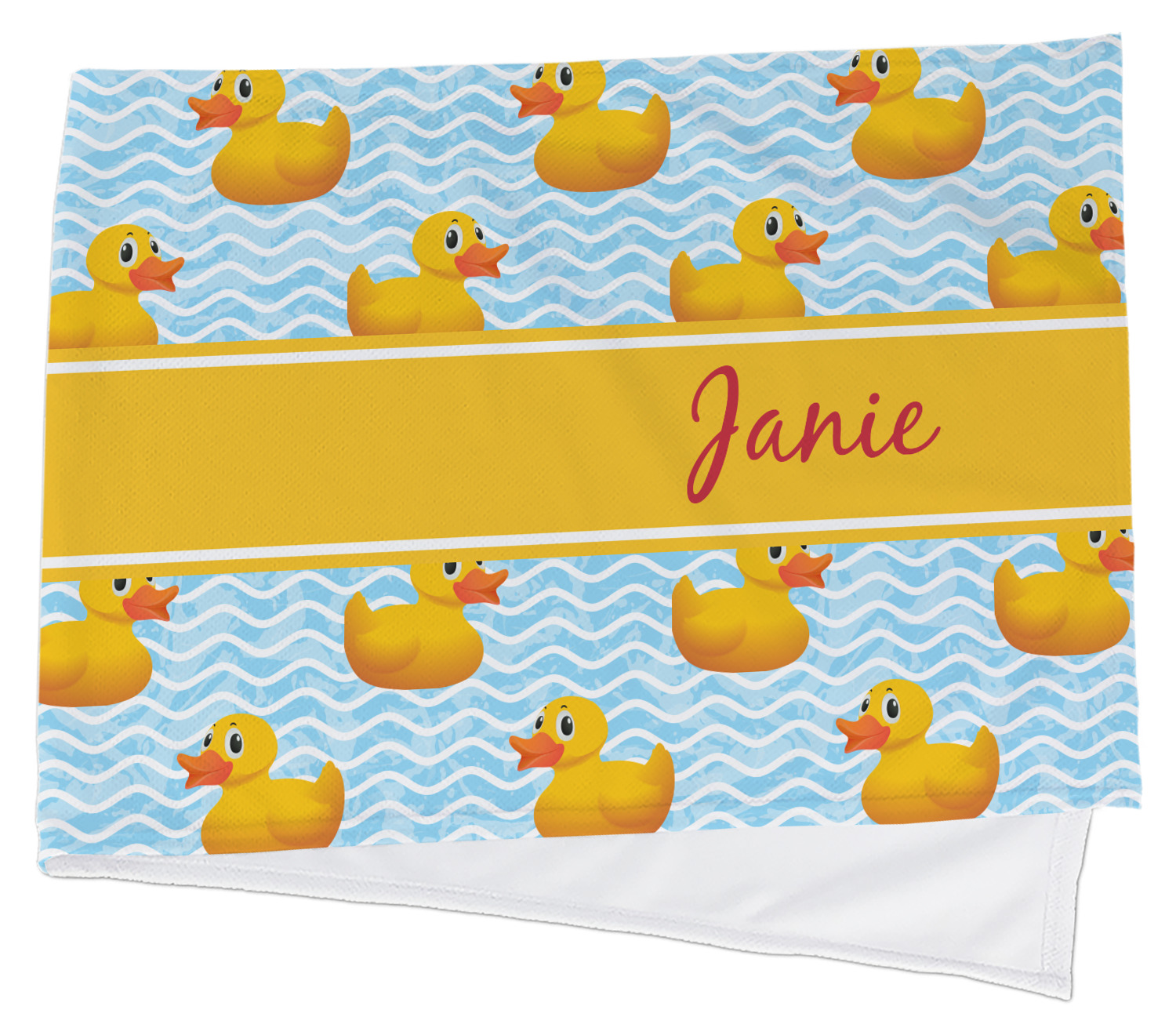 Rubber Duckies are as popular as ever. Our rubber duckie design features traditional yellow rubber duckies on a waves background. The duckies are floating around in water. Cute, adorable and simply precious are words that come to mind when looking at this design.