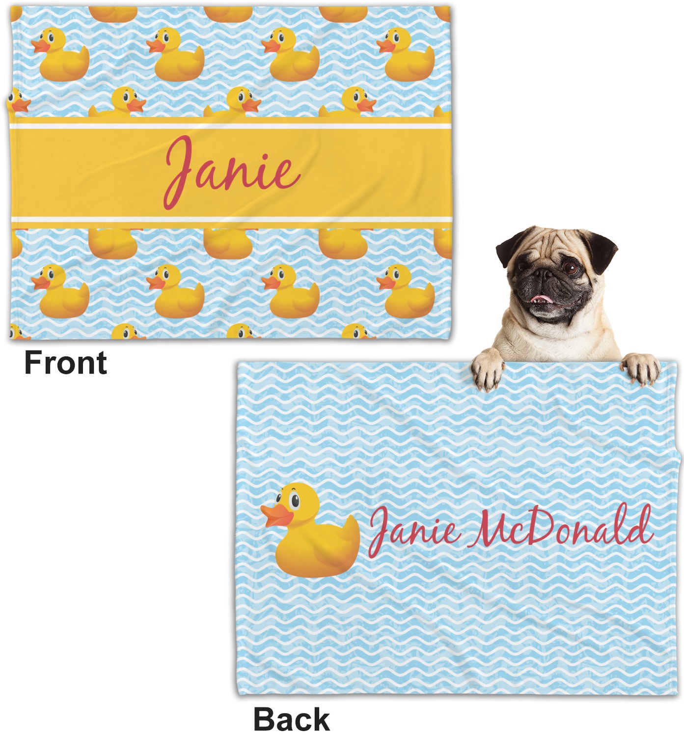 These dog blankets are crafted from a gentle, soft-to-the-touch, minky material. We print your customizations, either matching or differing, on both the top and underside of the blanket. These personalized dog blankets are available in two sizes: regular and large. Our regular size, at 40" x 30", accommodates small and some medium size dogs. At 60" x 50", our large dog blanket is a better fit for bigger breeds. Though specialized for dogs, these blankets still make a thoughtful gift for your favorite feline, or any other pet in mind!