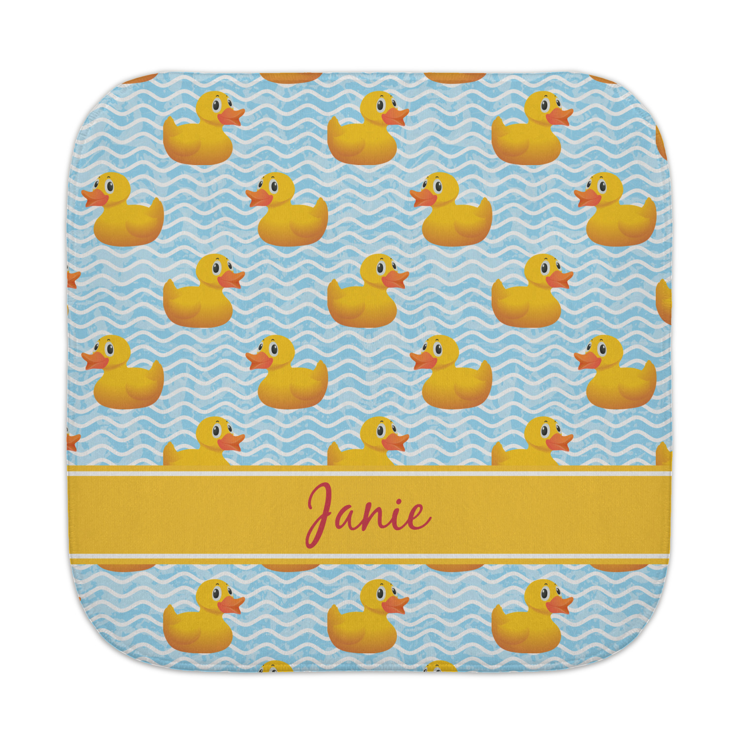 Rubber Duckies are as popular as ever. Our rubber duckie design features traditional yellow rubber duckies on a waves background. The duckies are floating around in water. Cute, adorable and simply precious are words that come to mind when looking at this design.