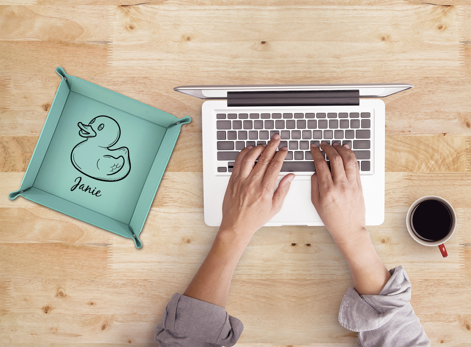 Available in rawhide or teal finish, you are sure to find a color and design that matches your needs. Both engrave in a rich grey and black to show your personalization and will not wear off since it is laser engraved.