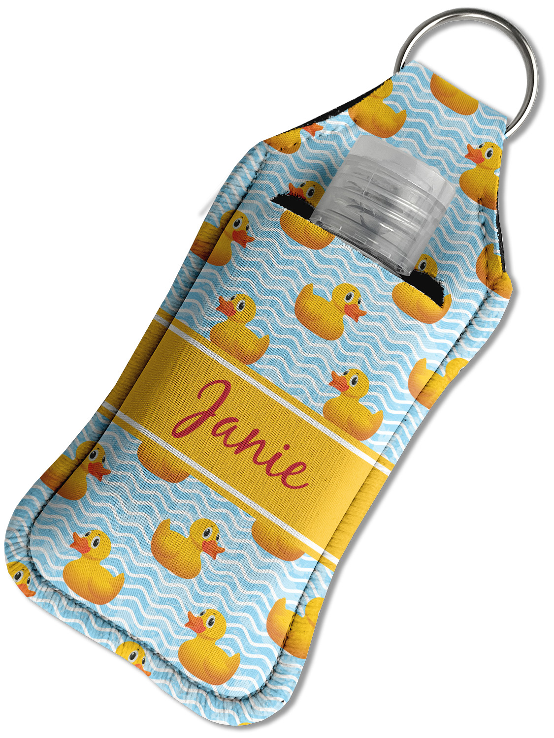 Each hand sanitizer holder comes with its own empty travel-sized, refillable hand sanitizer sure to fit snug in your customized sanitizer case! Our hand sanitizer cases are a durable, yet soft neoprene material sure to last any daily activities or travel agenda. Customize and personalize a hand sanitizer bottle holder with one of our two sizes - small (4.25" x 2.25") or large (5.5" x 2.5"). Each travel sanitizer holder comes with a keyring for attachment on bags, keys, or more!