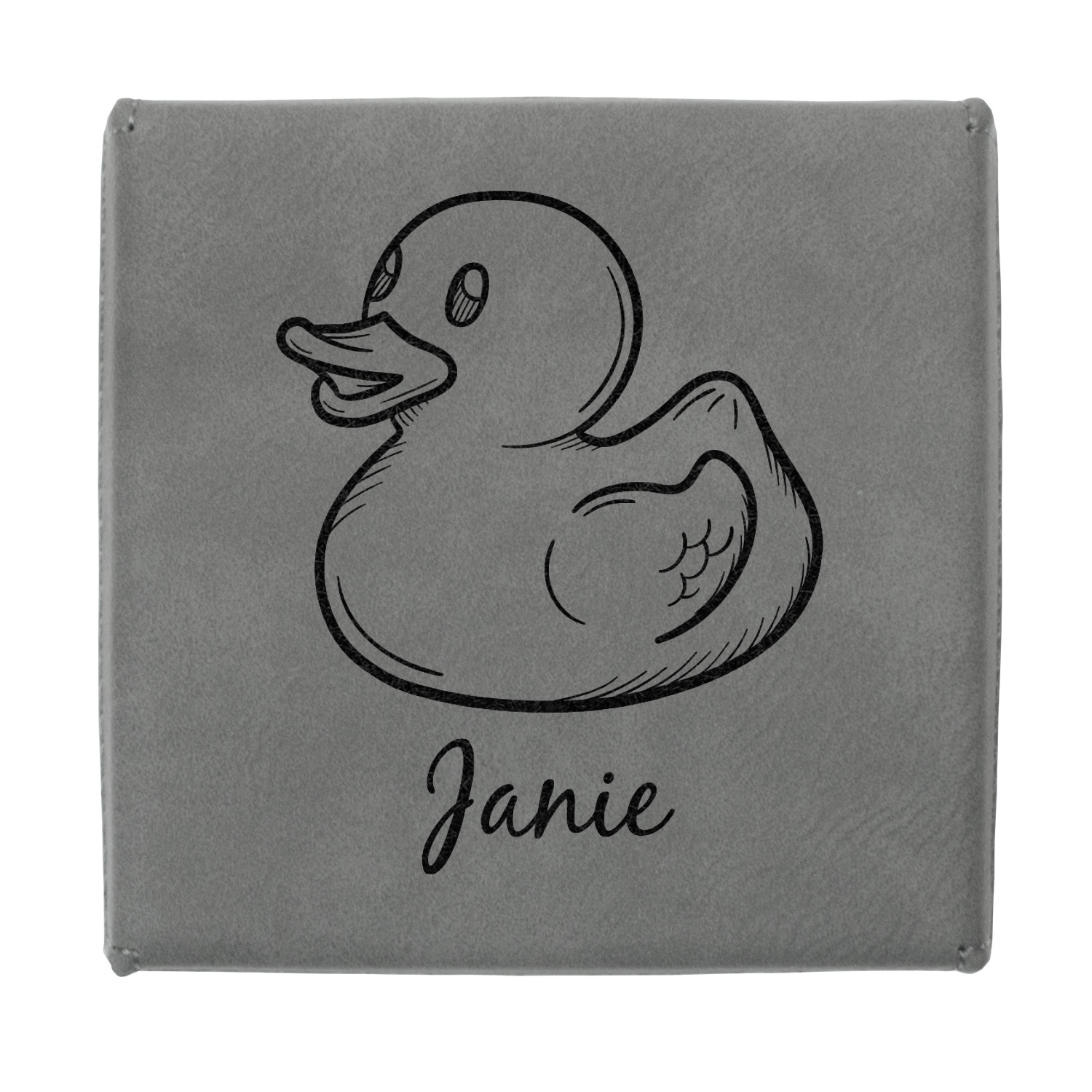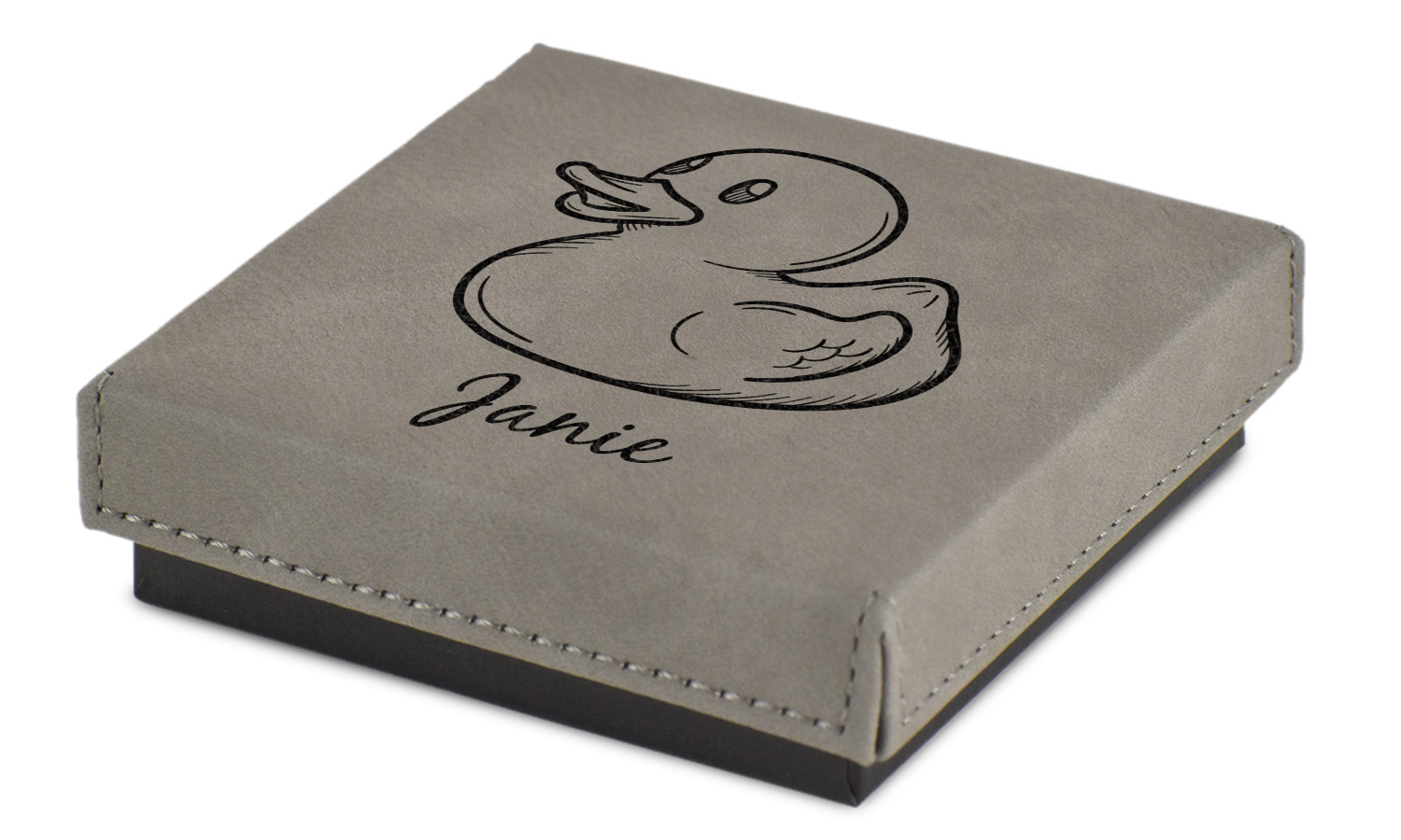 This jewelry gift box measures 3.5 inches long by 3.5 inches wide, and 1 inch deep. The box fits different sized jewelry items such as bracelets, necklaces, watches, earrings, rings and more. Engraved with a laser this high quality paper board and faux leather jewelry gift box is unique and makes any gift stand out.
