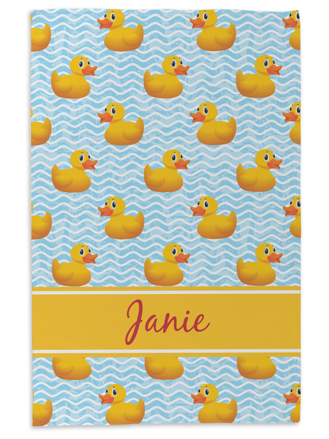 Rubber Duckies are as popular as ever. Our rubber duckie design features traditional yellow rubber duckies on a waves background. The duckies are floating around in water. Cute, adorable and simply precious are words that come to mind when looking at this design.