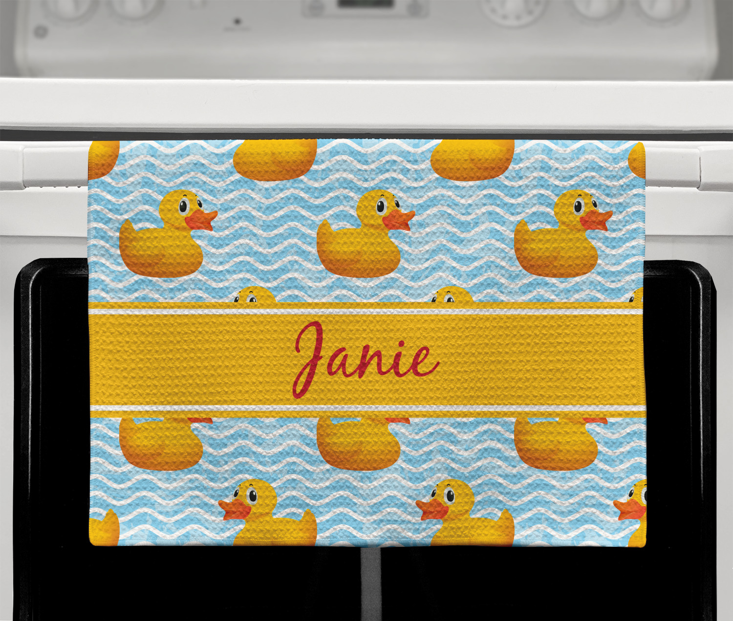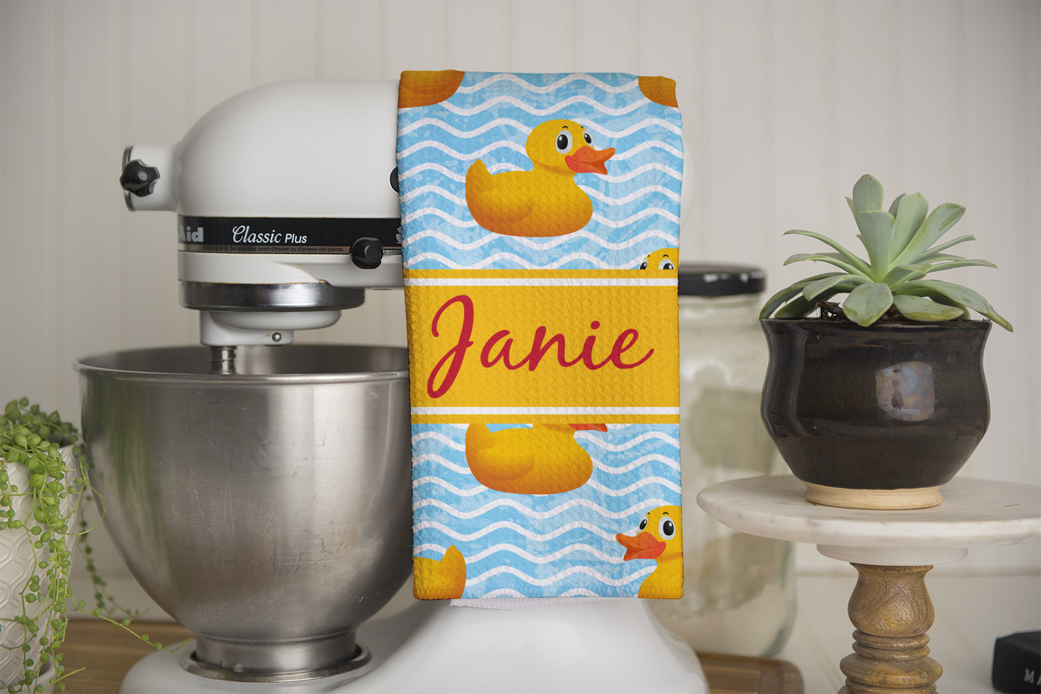 Each waffle weave kitchen towel is approximately 16 x 24 inches with your design printed on one side and the back is white.