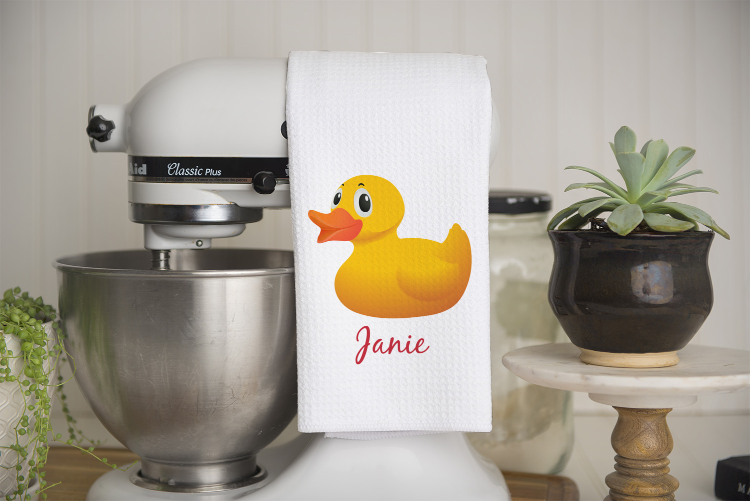Each waffle weave kitchen towel is approximately 16 x 24 inches with your design printed on one side and the back is white.