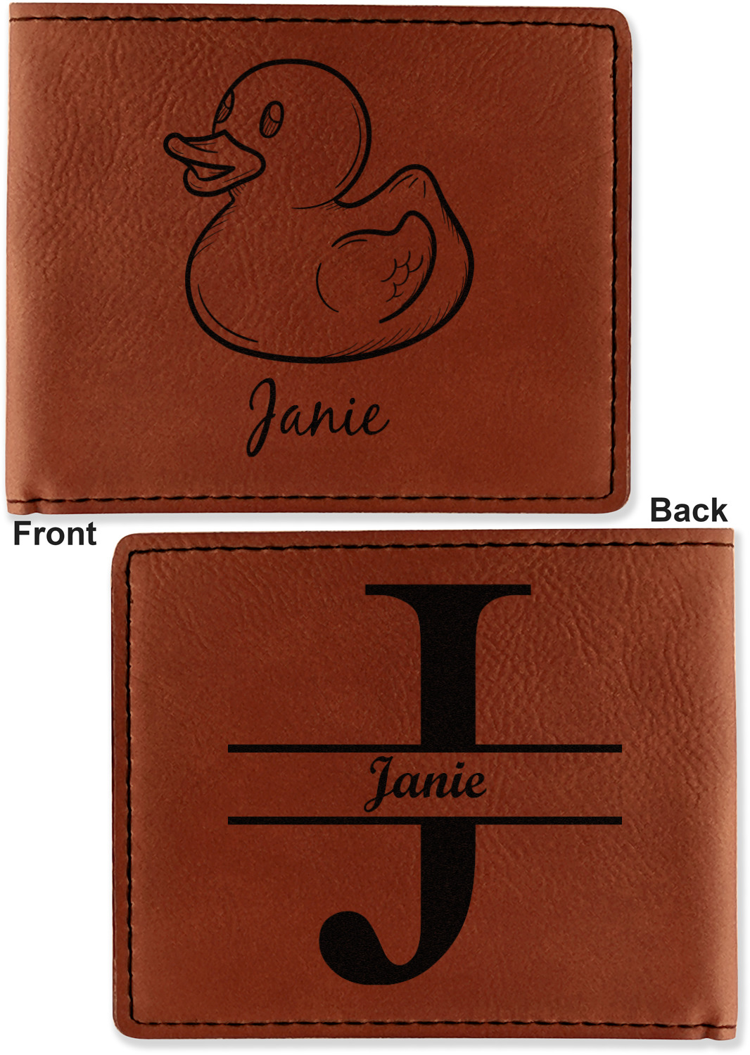Your bifold wallet will be personalized by laser engraving, which will be a black color on the wallet. Choose a graphic, text, or monogram to personalize your wallet. There are thousands of choices in our design center.