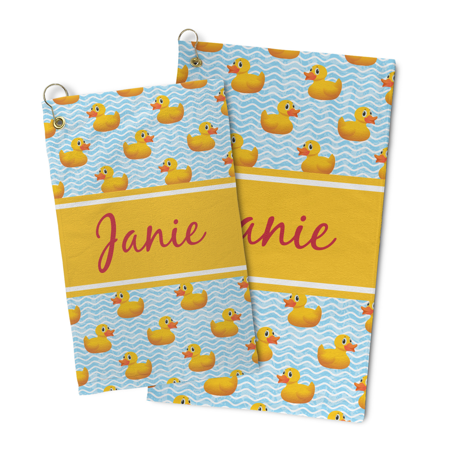 Rubber Duckies are as popular as ever. Our rubber duckie design features traditional yellow rubber duckies on a waves background. The duckies are floating around in water. Cute, adorable and simply precious are words that come to mind when looking at this design.