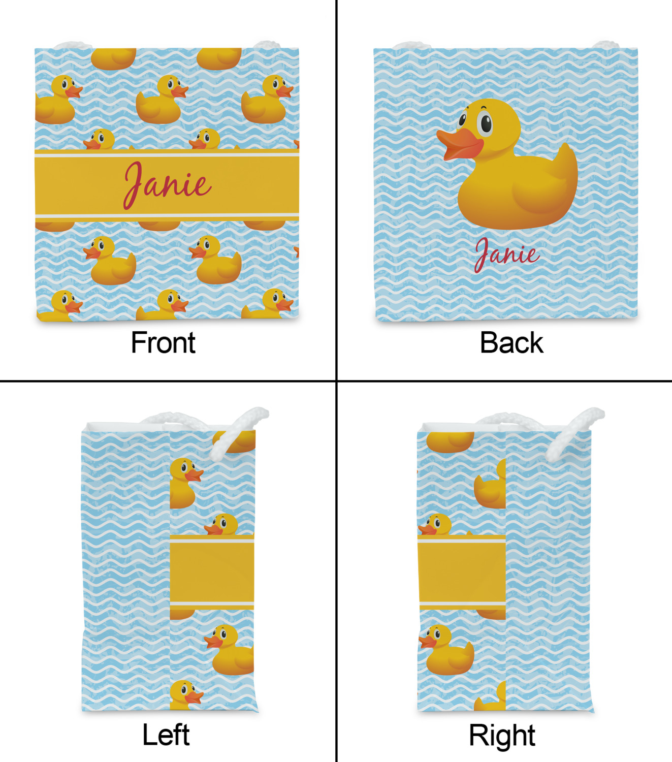 Rubber Duckies are as popular as ever. Our rubber duckie design features traditional yellow rubber duckies on a waves background. The duckies are floating around in water. Cute, adorable and simply precious are words that come to mind when looking at this design.
