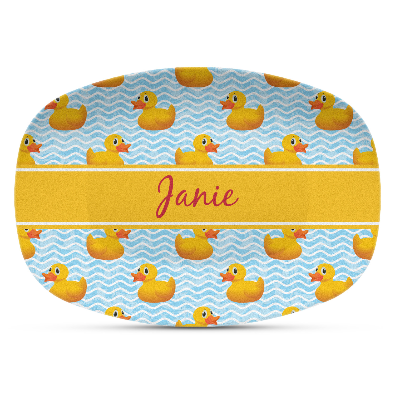 These serving platters are made from a composite, thermo-set, polymer plastic that gives it the versatility, durability, and weight of a melamine platter, without any of the downsides of melamine. These personalized platters, can withstand temperatures up to 250 degrees Fahrenheit, for up to 60 minutes. No harmful chemicals, such as BPA, formaldehyde, and DEHPs were used in the manufacturing of this product. This large serving platter measures at 14" x 10.25", and is spacious enough to hold any of your appetizers or bite-sized desserts. The platter exhibits your personalization across the entirety of its front.