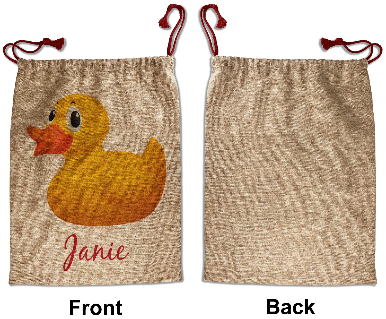 Our Santa sacks print your design on the burlap material giving it a nice rustic, natural design! The burlap material is also machine washable and wrinkle-free, so feel free to fold and store out Santa bags until the next time you need it! Secure your gifts with our red accent drawstring ties at the top of the sack so the mystery of your gift stays a surprise until Christmas day. We offer two types of printing- one side partial print or double-sided partial printing. Design and personalize your own Santa sack in time for the holidays!