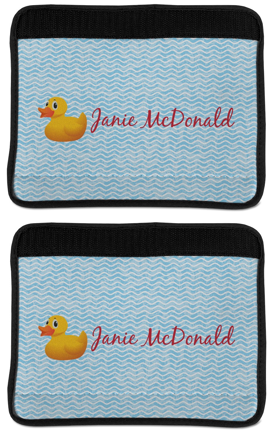 Made from neoprene, our seat belt strap covers wrap around the belt itself and have a Velcro tab for easy attachment and closure. The belt's edges are trimmed with a black polyester for a secure finish. Each cover is 9.5 by 7 inches when open and 9.5 by 2.5 inches when closed. We print your personalized design on the face of the seat belt pad.