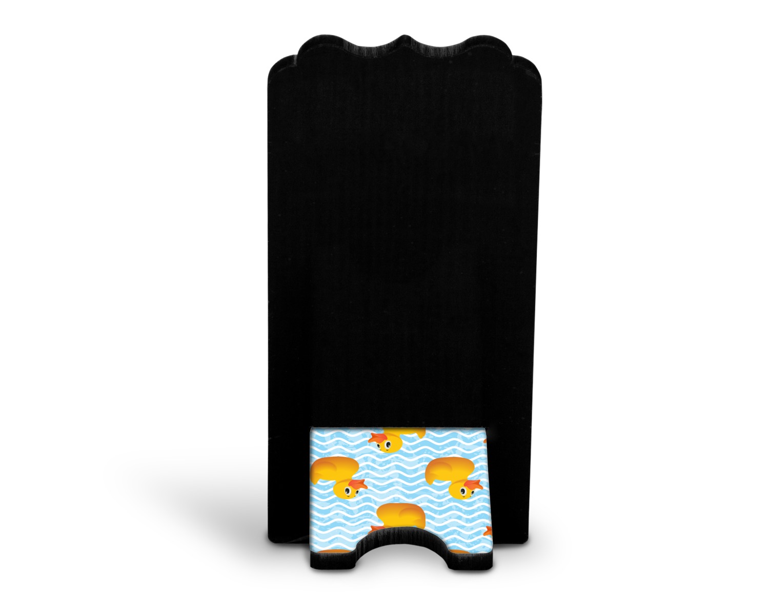 To meet your needs, we offer four variations of this IPhone stand. The backboard of the first version is shaped as a plain, yet sleek rectangle, and is available in two sizes. Our smaller size is approximately 4 by 3.25 by 7 inches, while the larger model is 4 by 3.77 by 8.5 inches. Alongside this model, we also provide you with a more decorative option. The upper part of our second version features a curved edge, for a classy, suave appearance. This phone holder is also sold in two sizes: a smaller version, which is 4 by 3.25 by 7 inches, and our larger model, which is 4 by 3.77 by 8.5 inches. Both models will support large phones, but the larger model is better if you wish to proudly display your personalized design.
