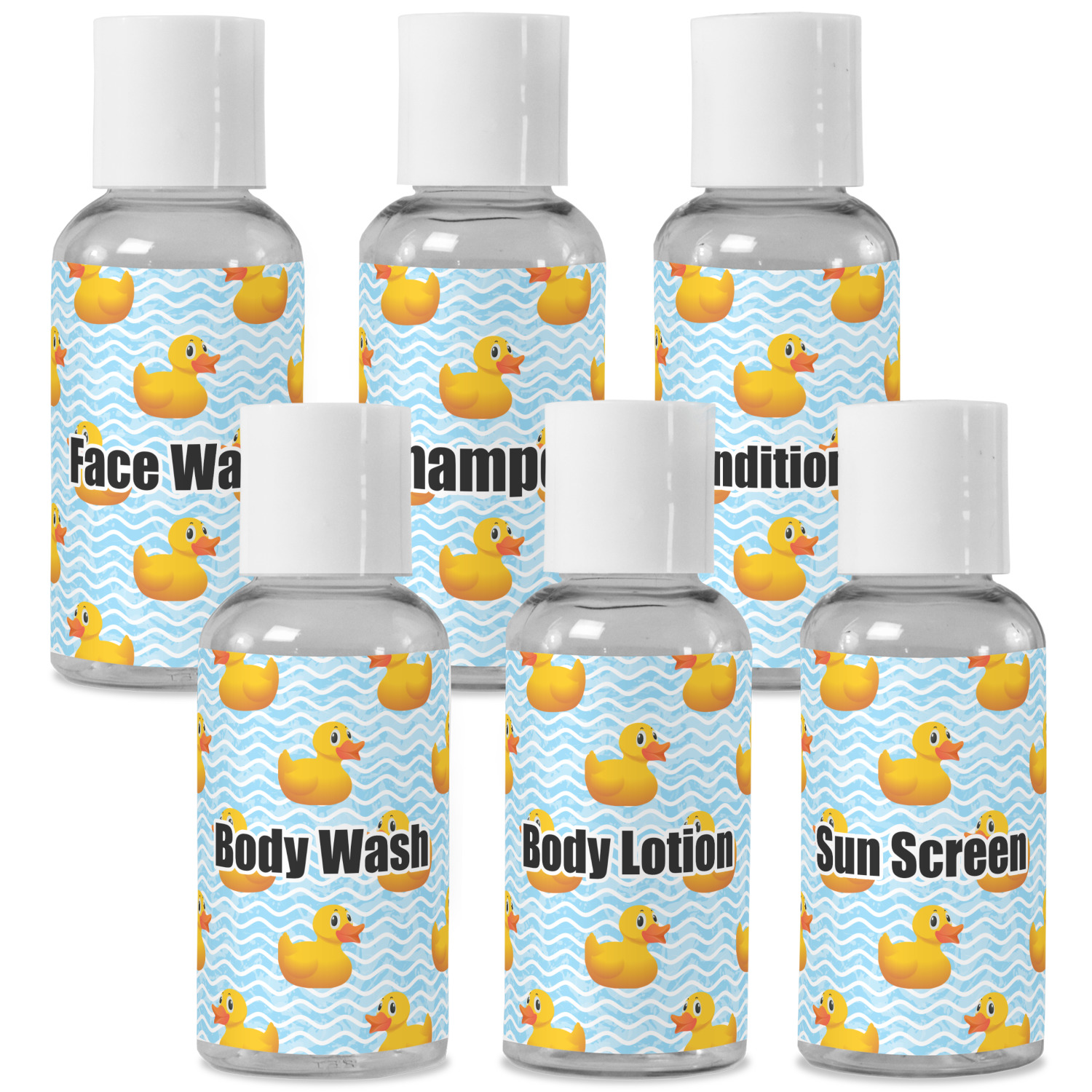 These soap and lotion travel bottles are the perfect place to start. Each set comes with 6 clear plastic bottles with white pop top lids. The bottles are cylindrical and can hold approximately 2.7oz. Perfect for plane travel!