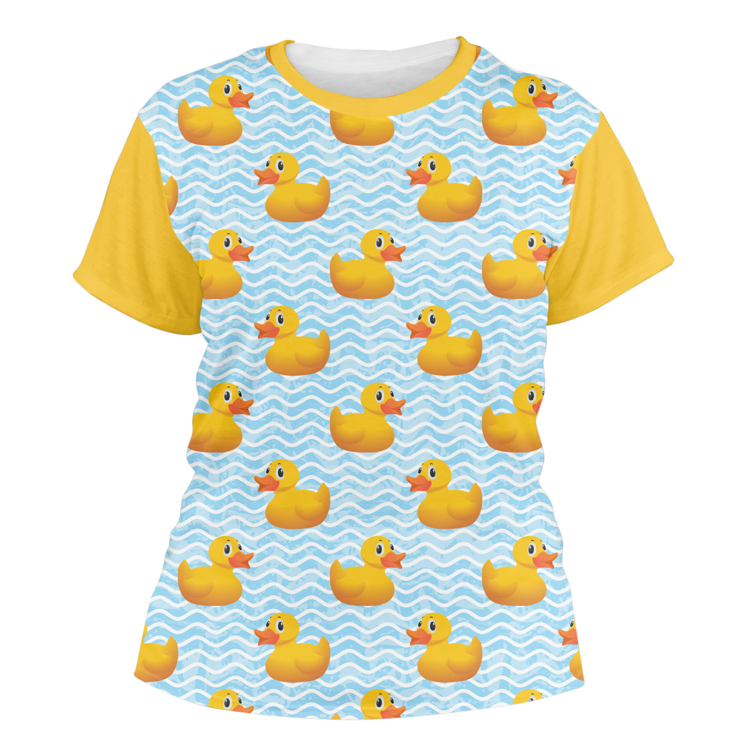Rubber Duckies are as popular as ever. Our rubber duckie design features traditional yellow rubber duckies on a waves background. The duckies are floating around in water. Cute, adorable and simply precious are words that come to mind when looking at this design.