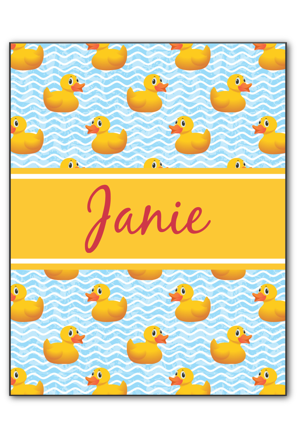 Rubber Duckies are as popular as ever. Our rubber duckie design features traditional yellow rubber duckies on a waves background. The duckies are floating around in water. Cute, adorable and simply precious are words that come to mind when looking at this design.